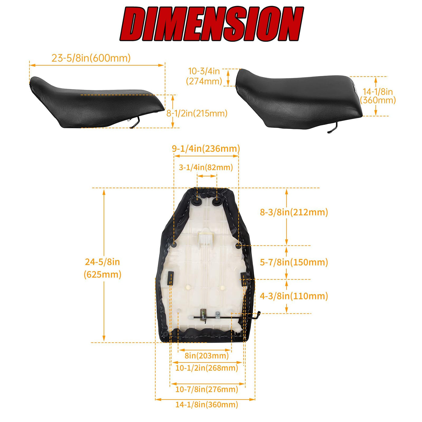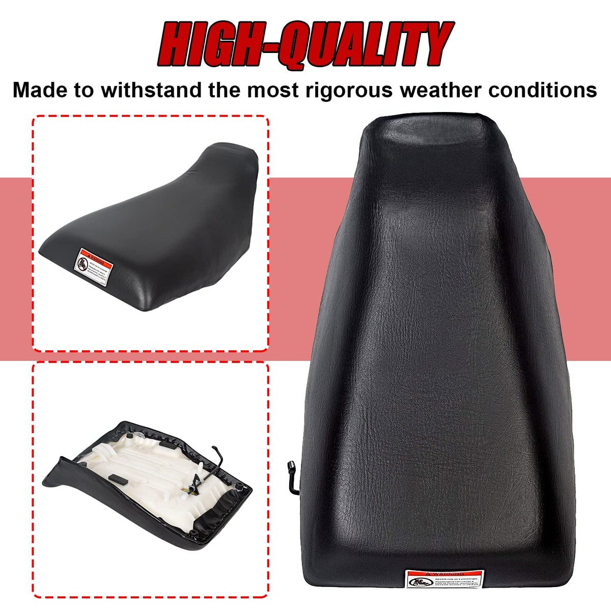 Fitment: Compatible With 1988-2000 Honda Trx300 Fourtrax. 1988-2000 Honda Trx300Fw 4X4 Fourtrax. Material: With Professional-Grade Artificial Leather Surface And High-Rebound Filling, It Is Not Easy To Crack When Exposed To Uv Rays And Can Withstand Harsh Weather And Environmental Conditions. Features: The Faux Leather Surface Is Easier To Clean And The Interior Padding Helps Cushion The Bumps On Rugged Mountain Rides. Function: Our Seat Is Fully Functional And Can Solve Problems Caused By Damaged Seat, Such As Inability To Ride Normally Or Poor Riding Feeling, Poor Appearance, Etc. Package &Amp; Installation: Package Contains A Black Complete Seat. No Instructions. Easy To Install, Your Old Seat And Put Ours Right On.