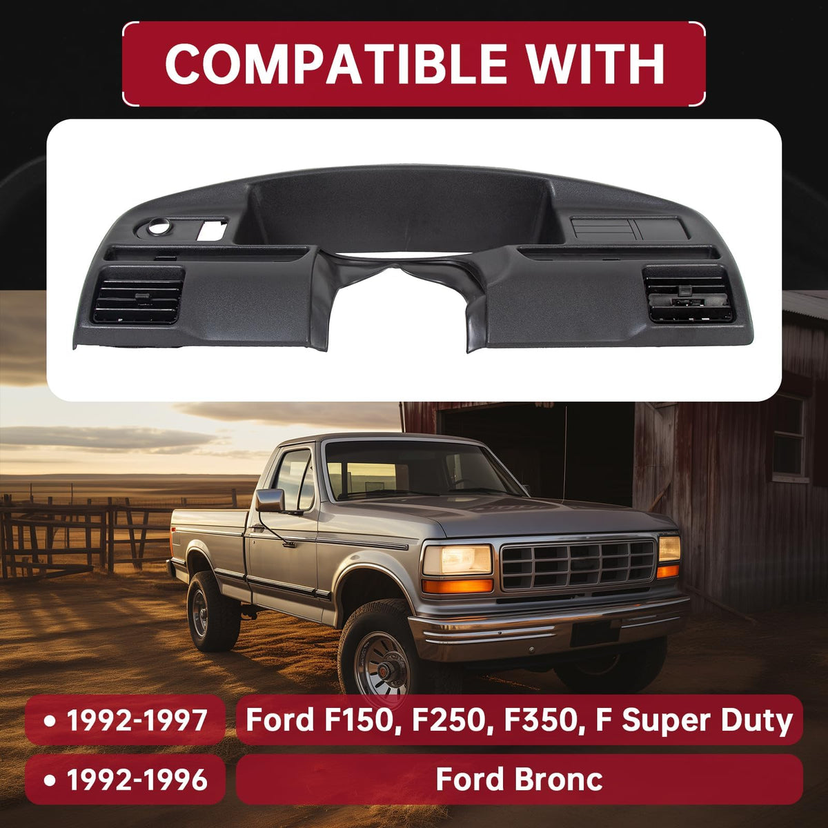HECASA Dash Panel Bezel Cover Compatible with 1992-1997 Ford F250 F350 Bronco Replacement for F2TZ-15044D70-A (Gas Engines ONLY)