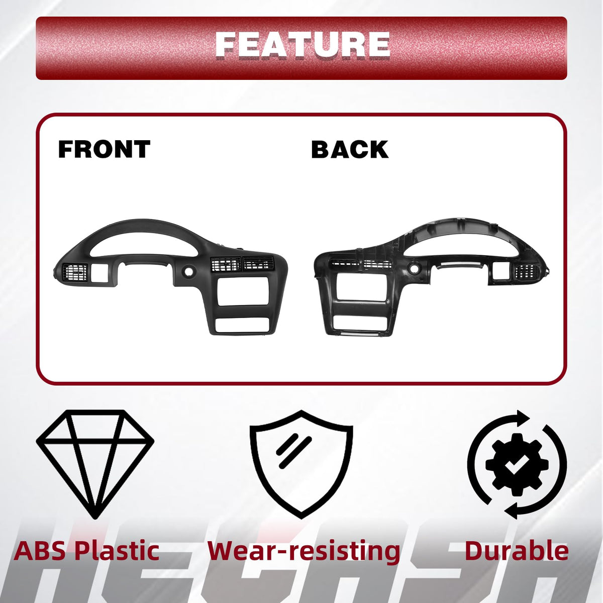 Q: What material is the dash panel cover made of?A: The dash panel cover is made of high-quality ABS plastic, which is known for its durability and resistance to heat, cold, and UV rays.