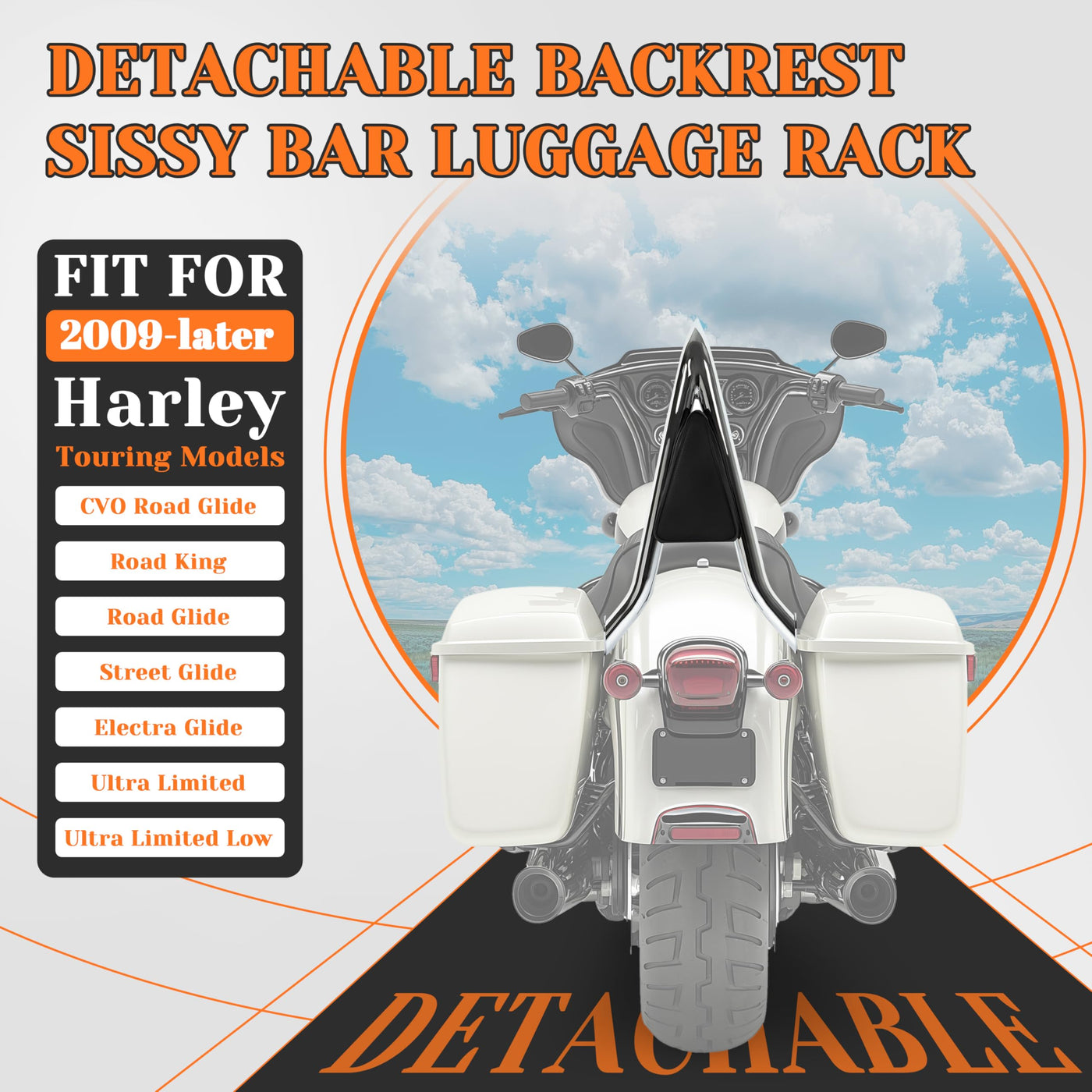 HECASA Detachable Backrest Sissy Bar Compatible with 2009-2024 Harley Touring Models Street Road Electra Glide Road King CVO Ult