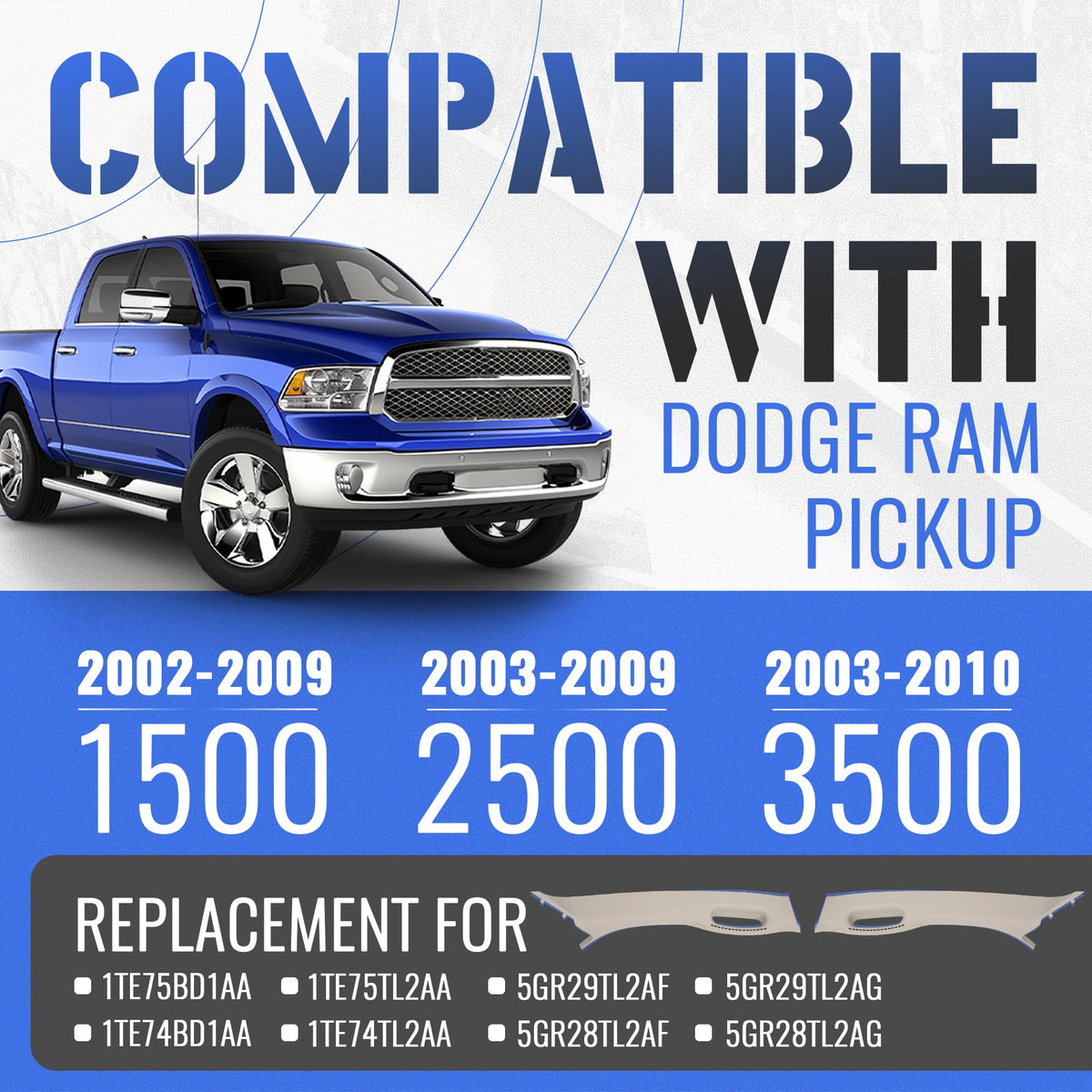 Hecasa Front Left & Right A Pillar Grab Handle Molding Trim Compatible With 2002-2010 Dodge Ram 1500 2500 3500 Pickup Truck (You