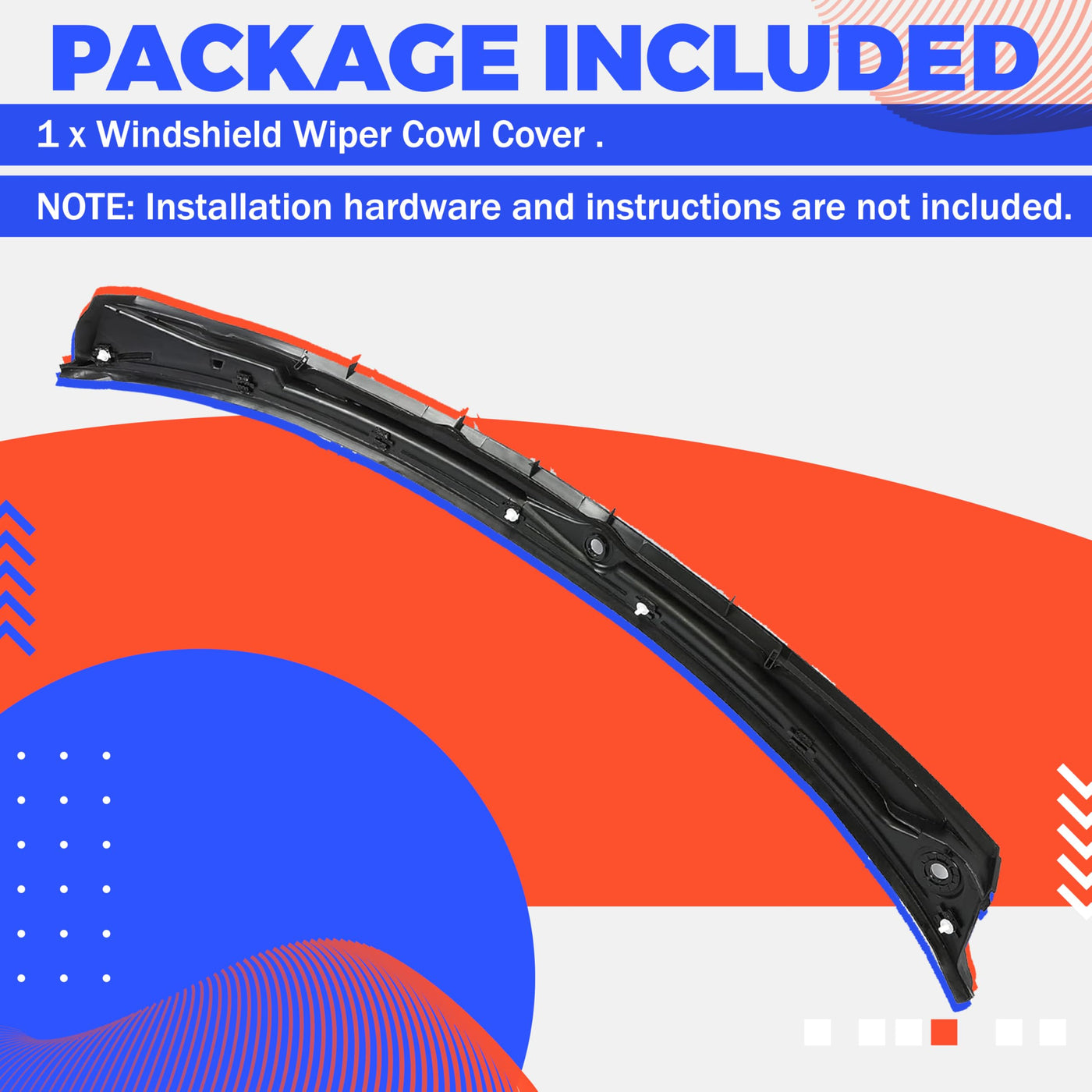 Q: What is included in the package when I purchase the wiper cowl cover?A: The package includes 1× Windshield Wiper Cowl Cover. Please note that instructions and installation hardware are not included.