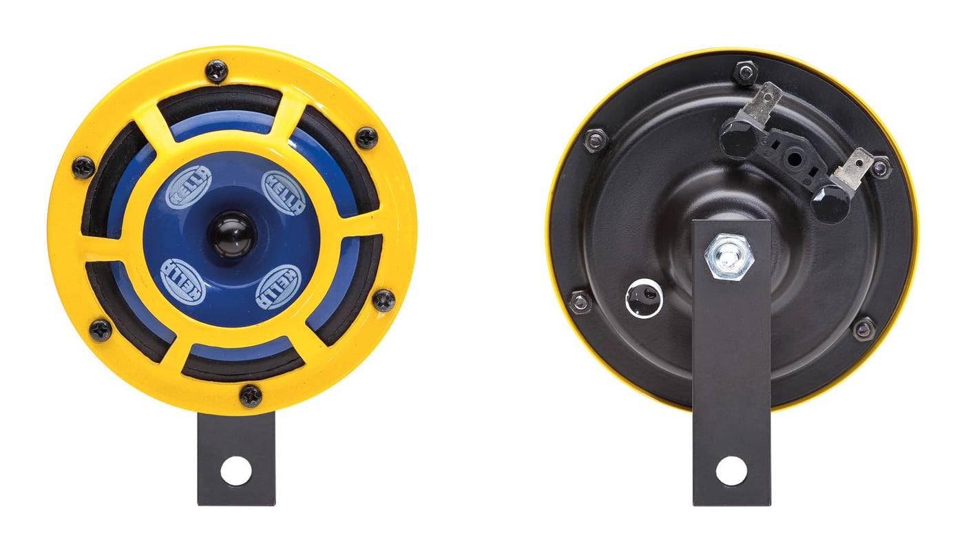 The HELLA Twin sharp tone horn kit produces quality sound in a clean compact design. These horn kits feature a black main body surrounded by a durable yellow protective grill. With 12V performance, this sharp tone horn kit fits a variety of vehicles. Be heard with a HELLA sharp tone horn kit.