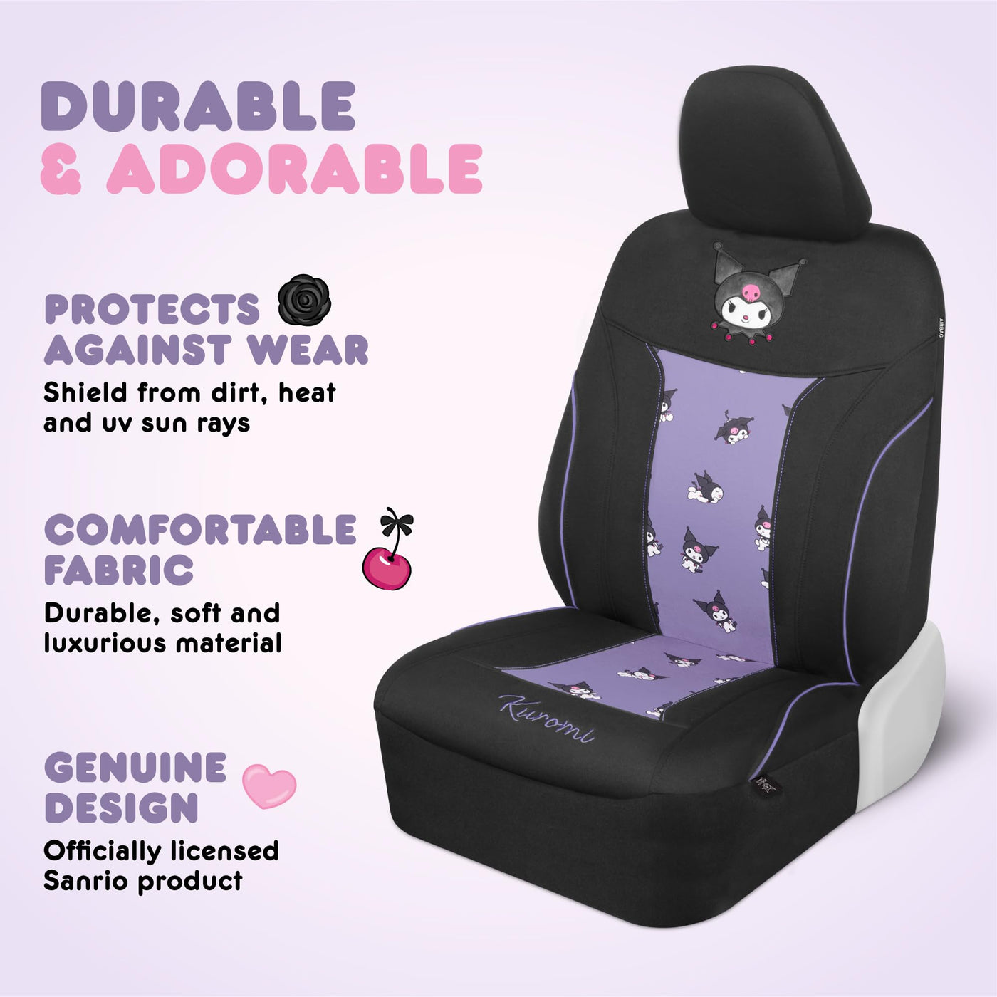 Hello Kitty Kuromi Car Seat Covers - Cute Black and Purple Front Seat Covers with Lavender Accents, Durable and Comfortable Polyester, Car Accessories Hello Kitty Accessories 2pc