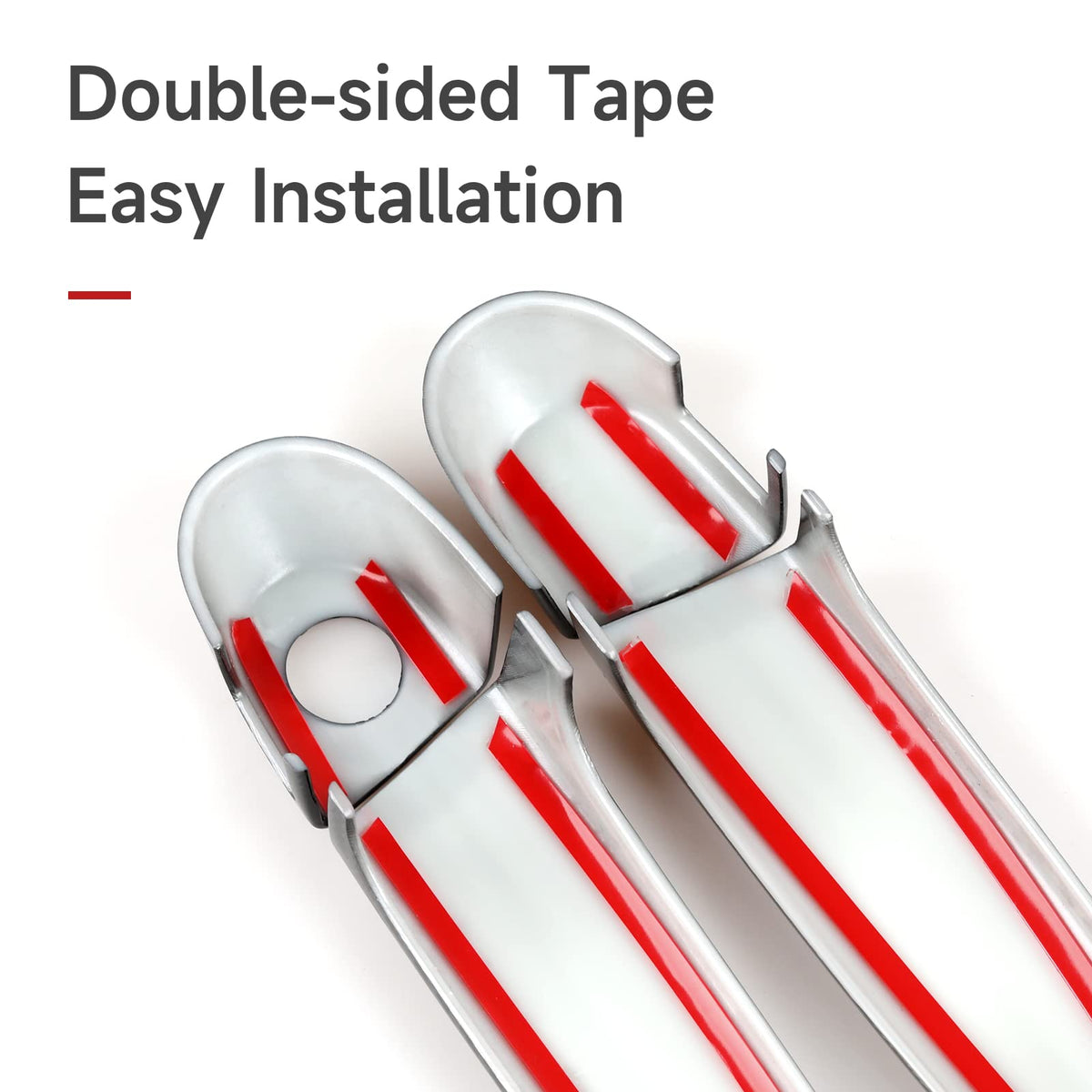 Q: How do I install the car door handles cover stickers?A: Installation is simple with the self-adhesive design. Just clean the surface, peel off the backing, and stick the covers onto the door handles. They can be easily removed without leaving any residue.