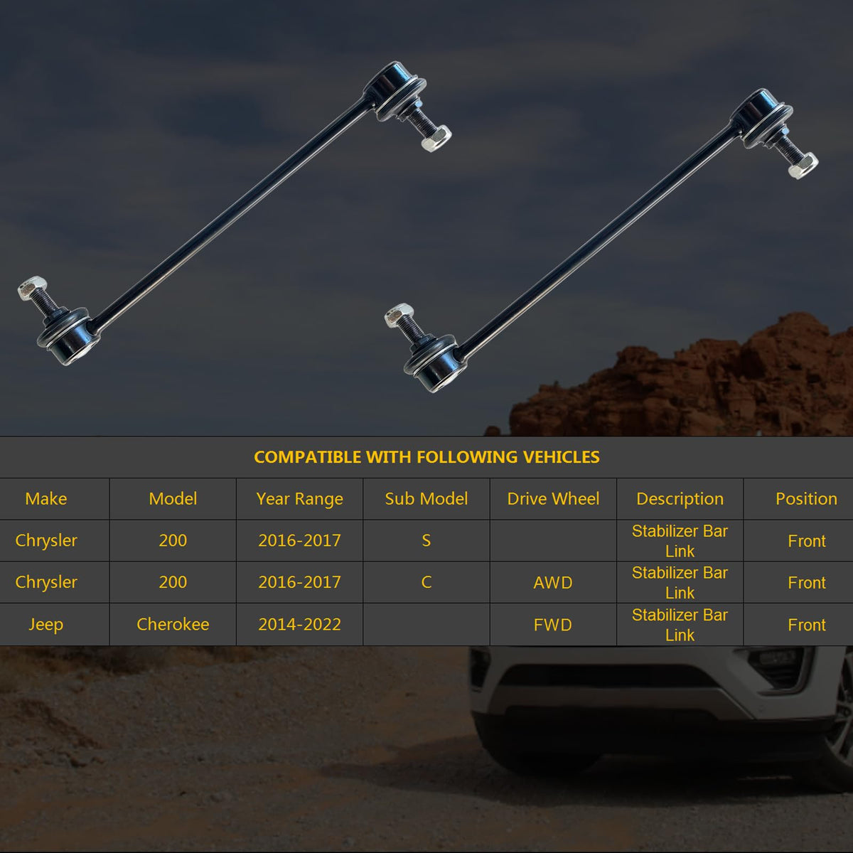 Hhcm 2Pc Front Sway Bar Link Kit K750704 For Jeep Cherokee 2014-2022 Fwd, Suspension Stabilizer Bar End Links For Chrysler 200 2