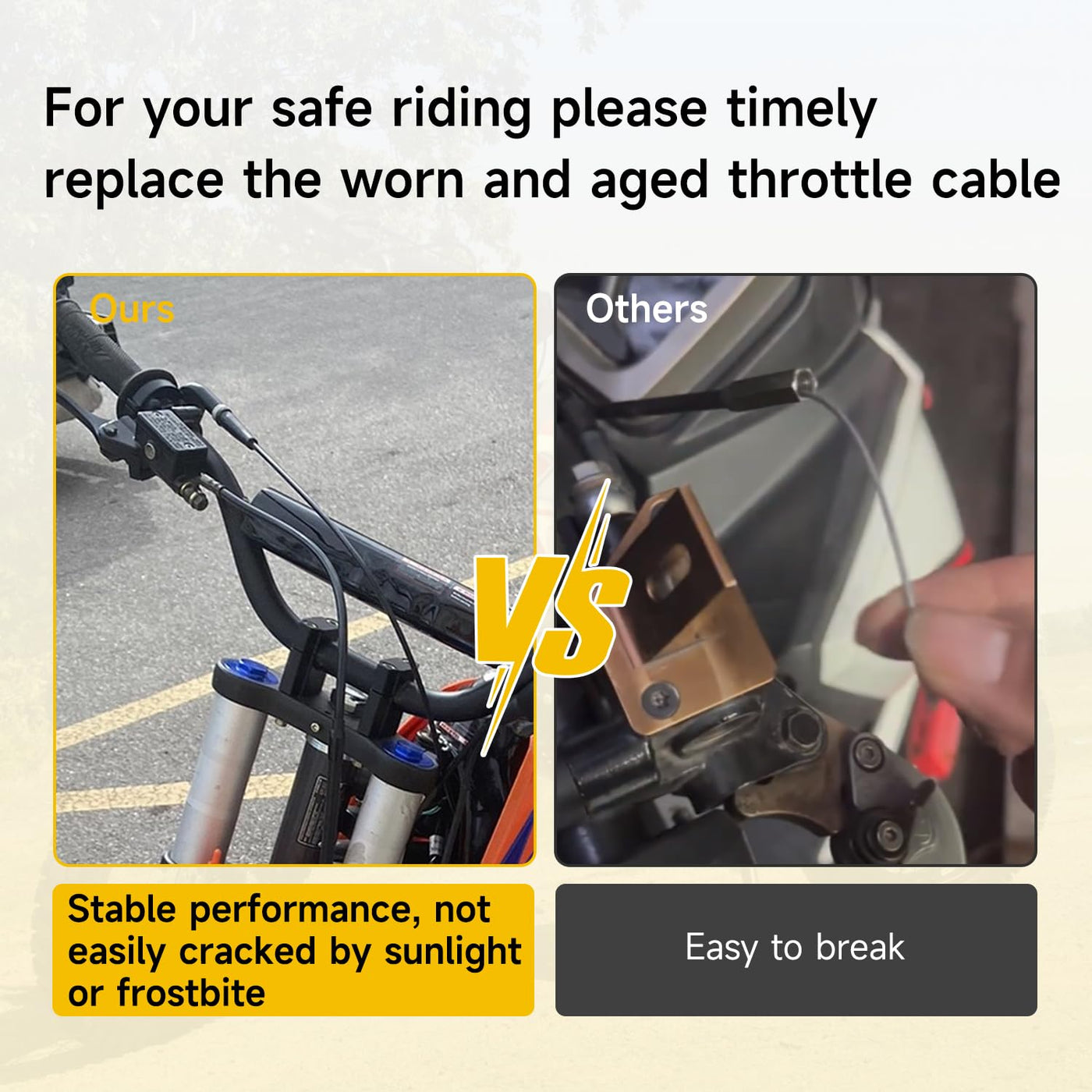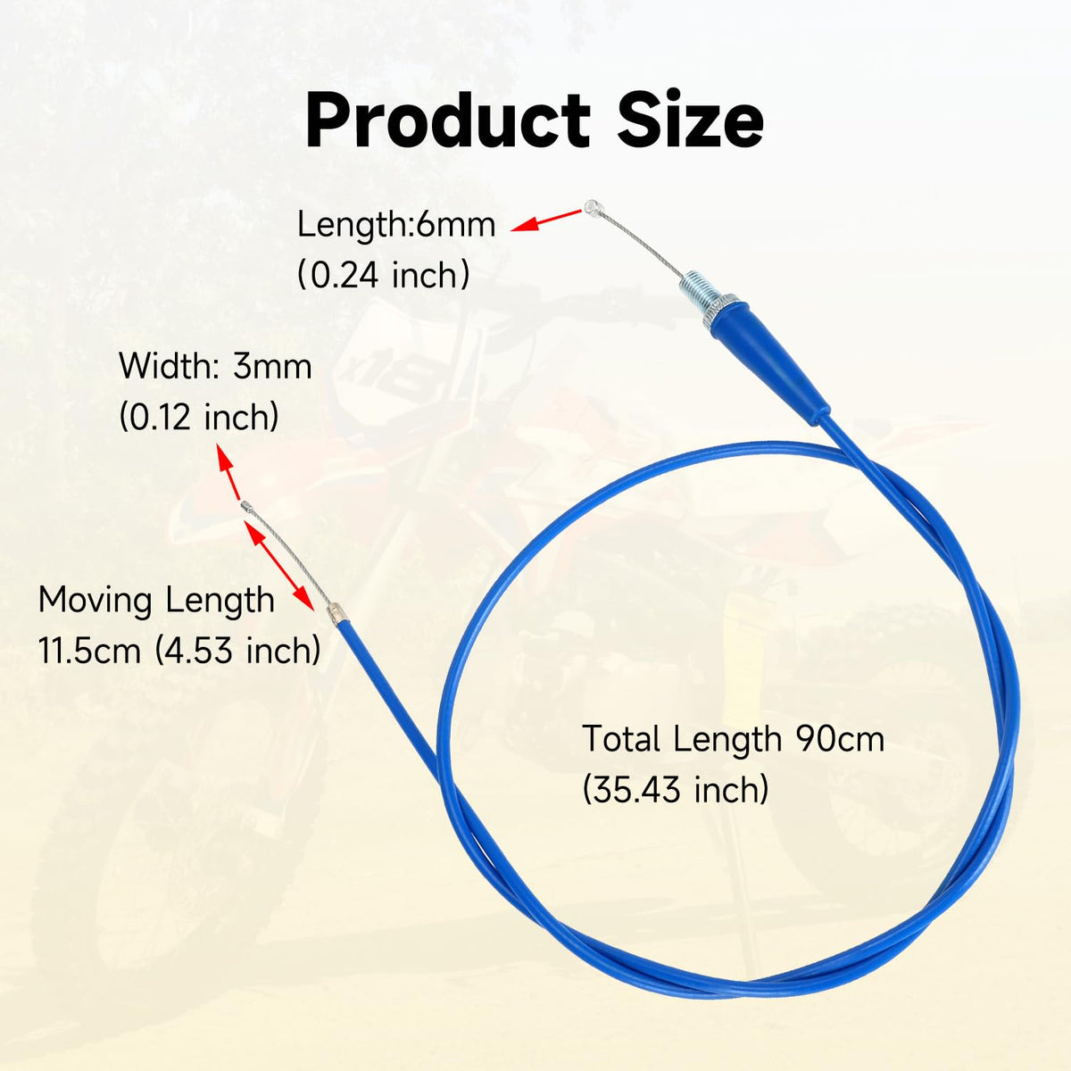 Fitment: 35.43'' inch dirt bike throttle cable is compatible with 50cc 70cc 90cc 110cc 125cc 150cc SSR Coolster TaoTao Apollo RFZ Baja Dirt Runner Yamah* Hond* X-pro X-Motos X-Trem* SYX Moto 4-Stroke Kayo Lifan Thumpstar Roketa Chinese Pit Dirt Bike Motorcycle Motocross Parts Compatibility: This pit bike throttle cable is mainly compatible with SSR 110/ SSR 125/ SSR 70/ 110TR/ 125TR, Baja Dirt Runner DR50/ DR70/ DR90/ DR125, Tao Tao DB14/ DB17/ DB20/ DB24/ DB27, Apollo RFZ 125 DB-X14/ DB-X16/ DB-X18/ DB-X19, Hond* CRF50 XR70, Coolster QG-210/ QG-213A/ QG-214S/ XR125/ MadMax/ M-125 Good-Quality: 35.43'' throttle cable is made of good quality rubber and extra outer sleeve can protect cable for long-term use. It is easy to install and can be used without any modifications Size: The total length for throttle cable is 35.43'' (90cm), and the moving length is 4.53 inch (11.5cm). Total length includes moving length Note: Please check the size and picture of product before purchasing. You can leave us message if you have any after-sale problems