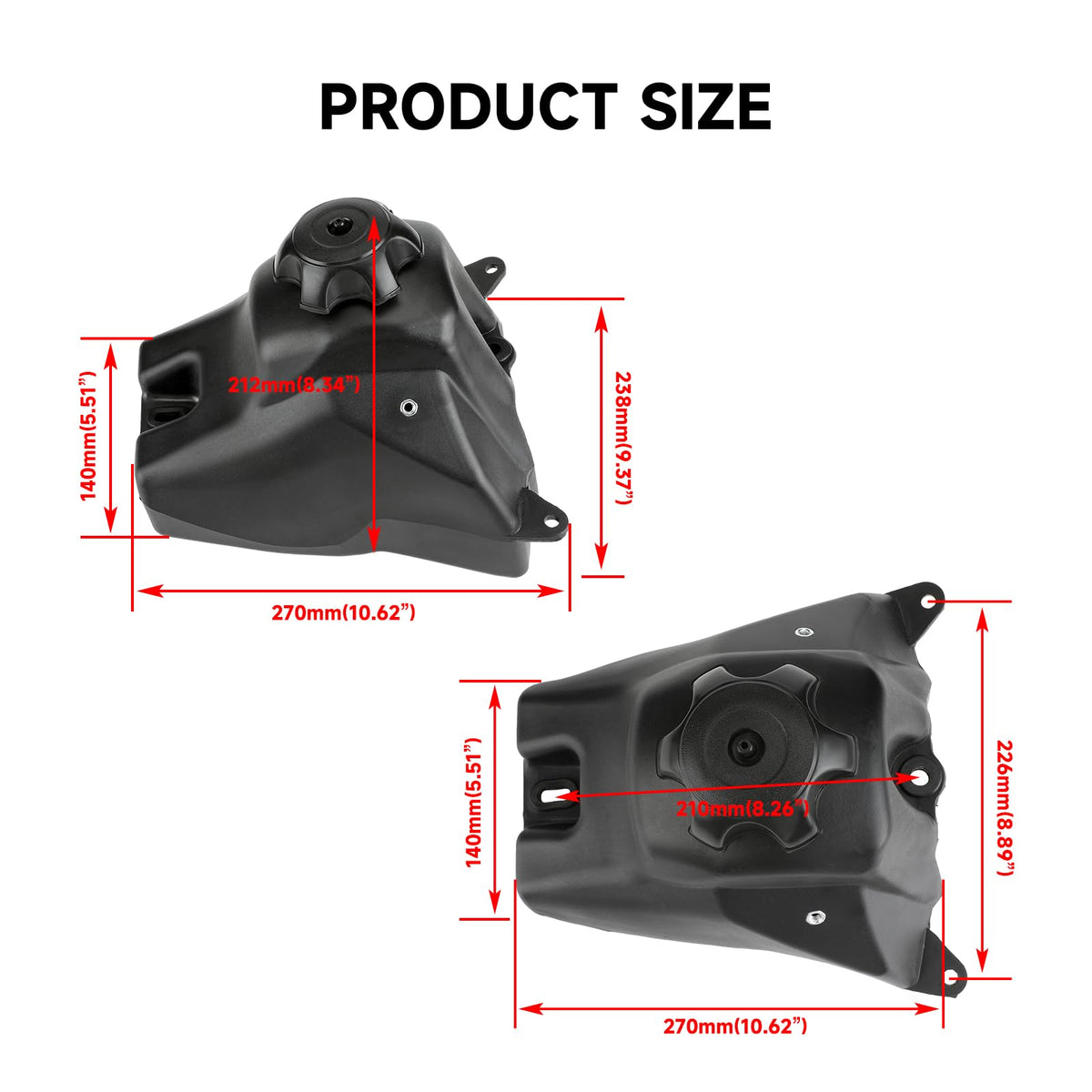 Q: What should I consider before purchasing the HIAORS Gas Fuel Tank?A: Before purchasing, ensure to check the size specifications, including the mounting hole distance of 8.66 inches and overall dimensions, to confirm that it fits your specific dirt bike model.