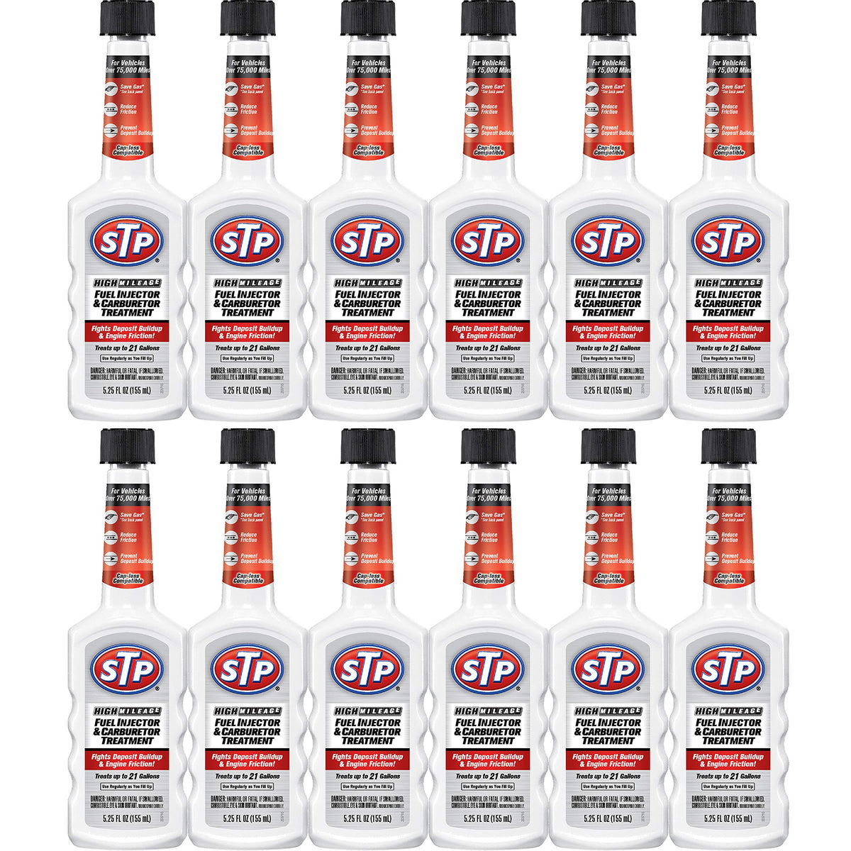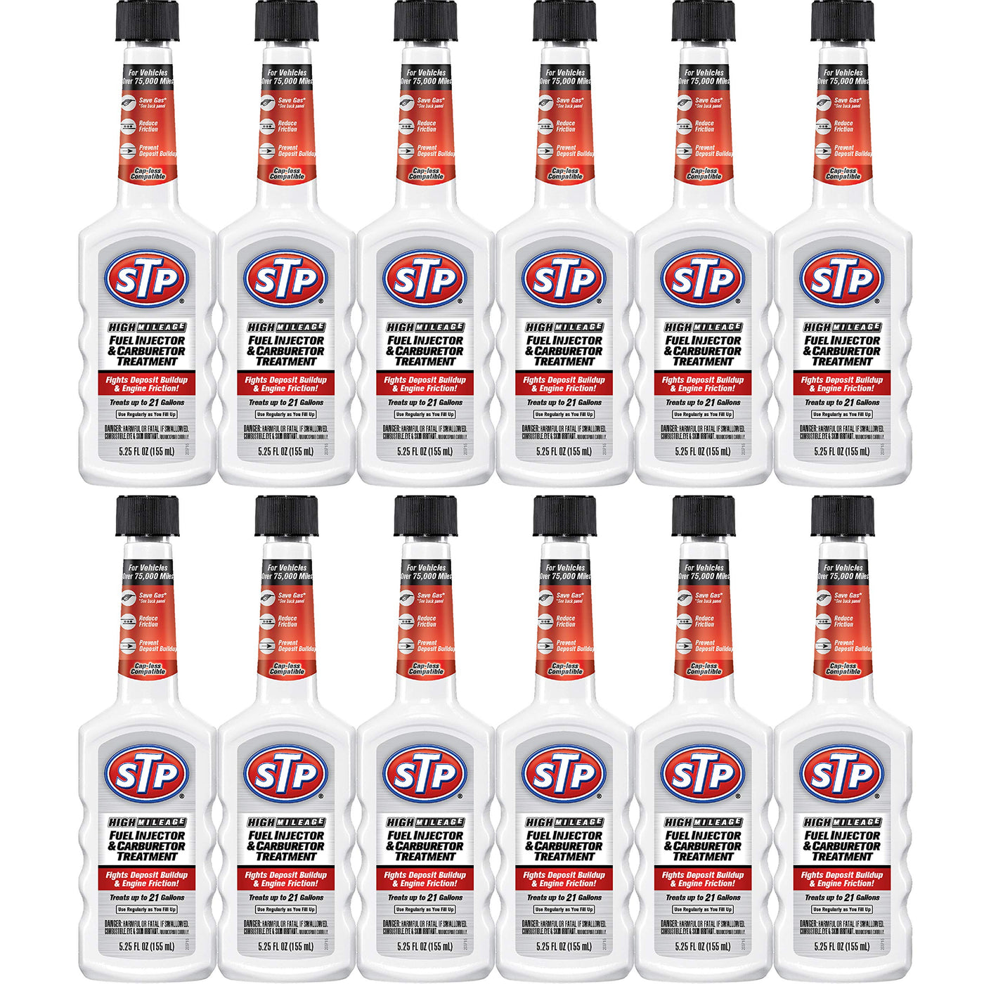 High Mileage Fuel Injector Cleaner And Carburetor Cleaner Treatment, Bottled Lubricant For Upper Cylinder, 5.25 Oz, 12 Count, Stp