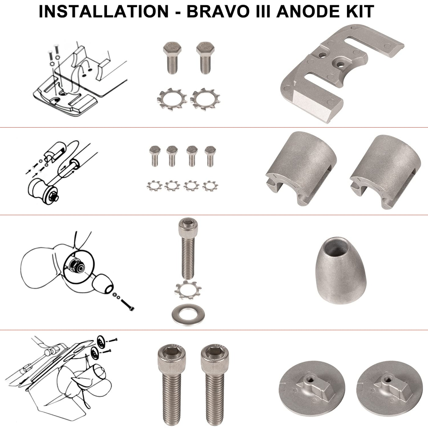 Hihitomorrow Complete Aluminum Anode Kit Compatible With 2004+ Mercruiser Bravo 3 Iii Drives Sterndrives Replace For Cmbravo3Kit