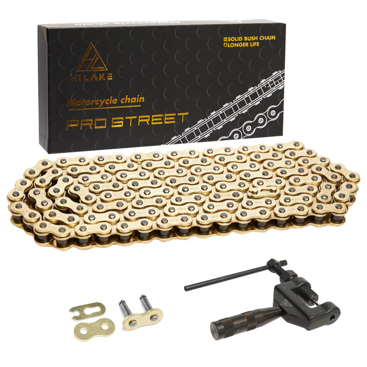 This Hilake 420H Motorcycle Chain Is A Heavy-Duty Drive Chain Designed For Motorcycles, Bicycles, Go-Karts, And Mini Trail Bikes. With 132 Links, This Non-O-Ring Chain Is Perfect For Extreme Conditions And High-Speed Riding. The Package Includes A Connecting Master Link And A Chain Breaker, Making Installation And Maintenance A Breeze. Upgrade Your Ride With This Durable And Reliable Motorcycle Chain From Hilake.