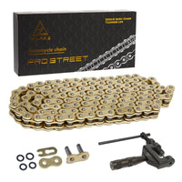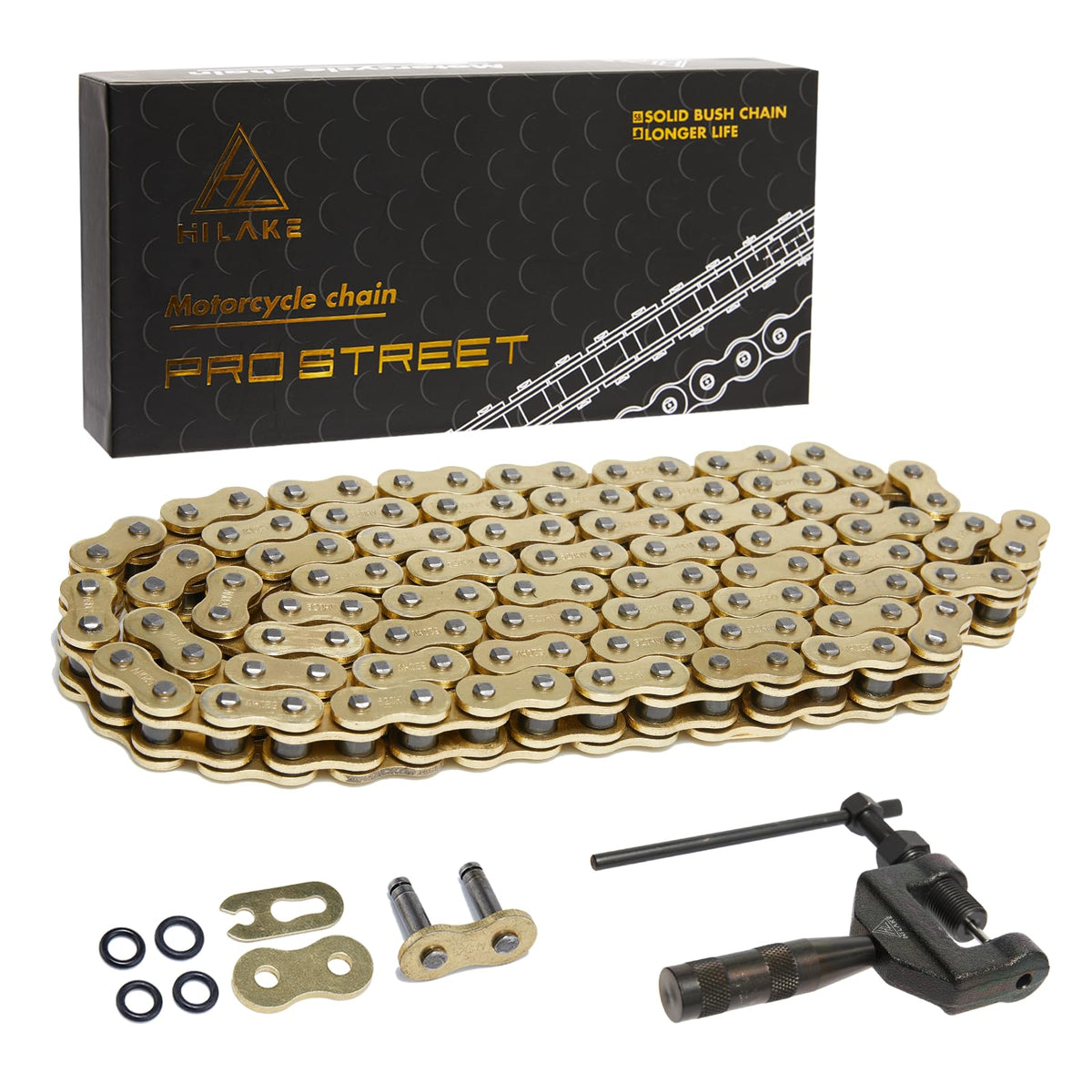 Q: Does the HILAKE 520 Motorcycle Chain come with installation tools?A: Yes, the package includes a connecting master link and a chain breaker, which facilitate easy installation and maintenance of the motorcycle chain.
