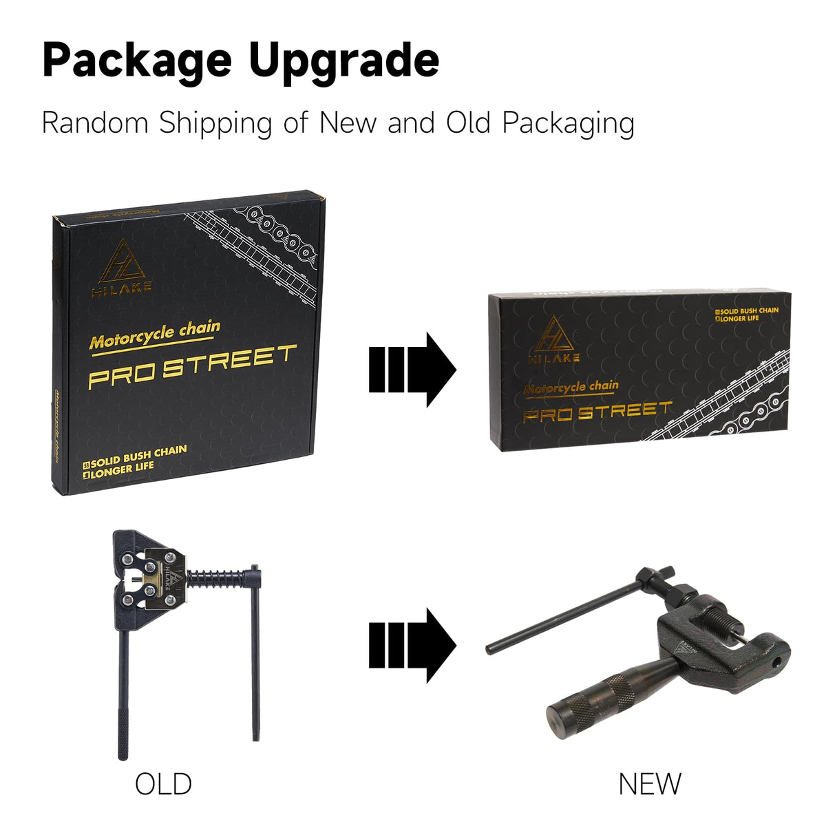 Q: Does the HILAKE 520 Motorcycle Chain come with installation tools?A: Yes, the package includes a connecting master link and a chain breaker, which make installation and maintenance straightforward and convenient.