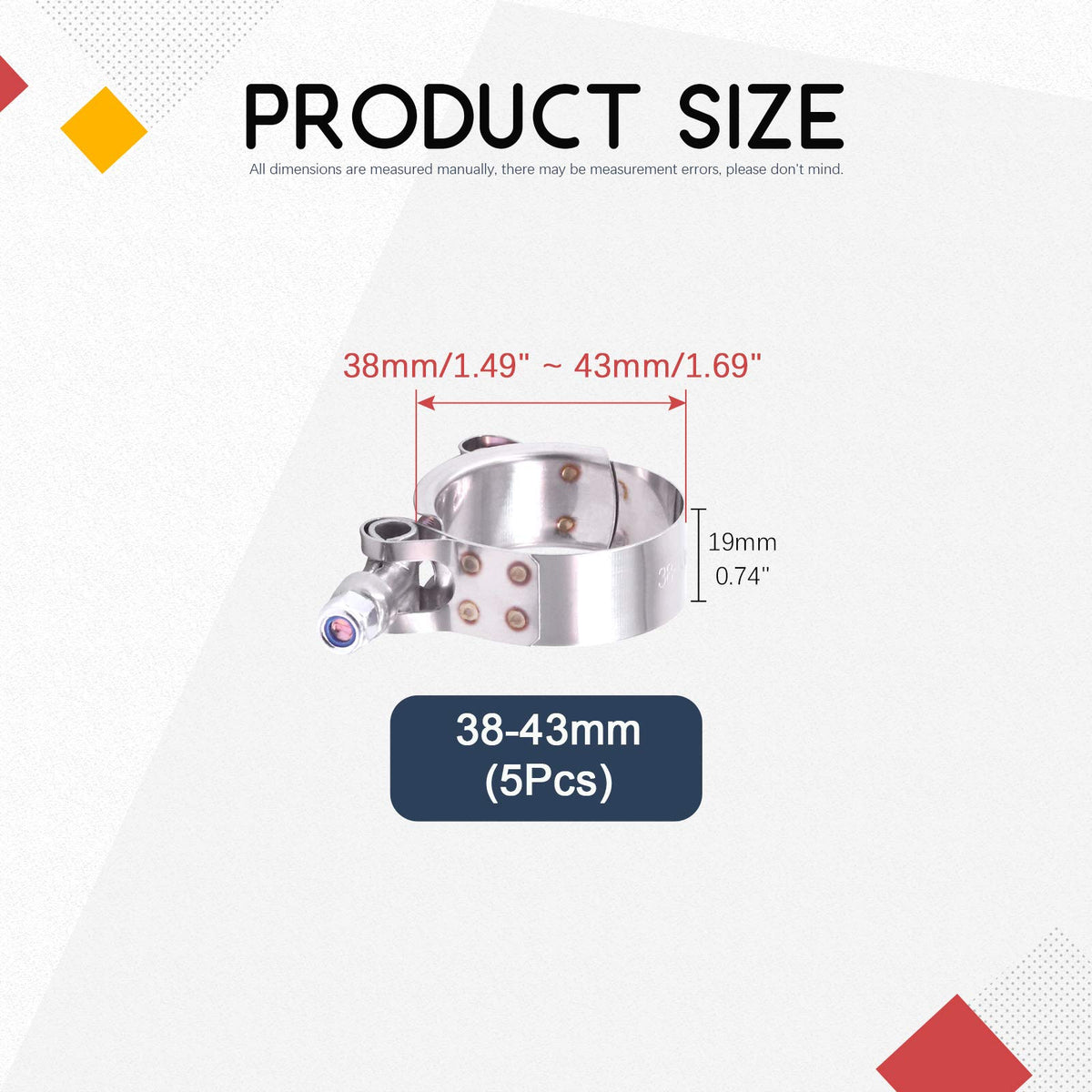 Hilitchi 5Pcs Stainless Steel T-Bolt Clamps With Rounded Band Edges Heavy Duty Turbo Intake Intercooler Clamp (38-43Mm) For 1 3/