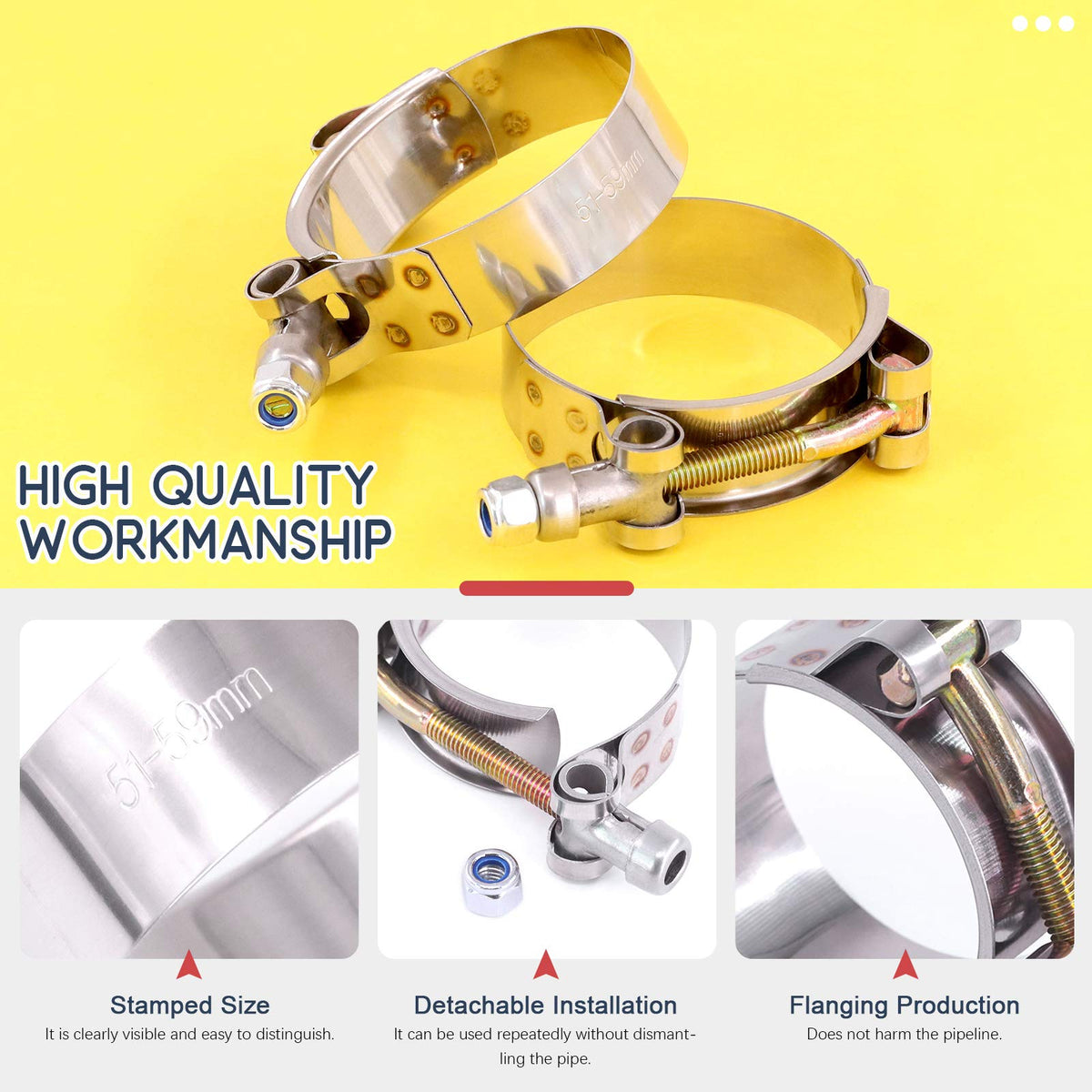 Q: How do these clamps compare to traditional hose clamps?A: These T-bolt clamps provide better tightening effects and are more durable than traditional hose clamps. Their design also protects soft hoses.