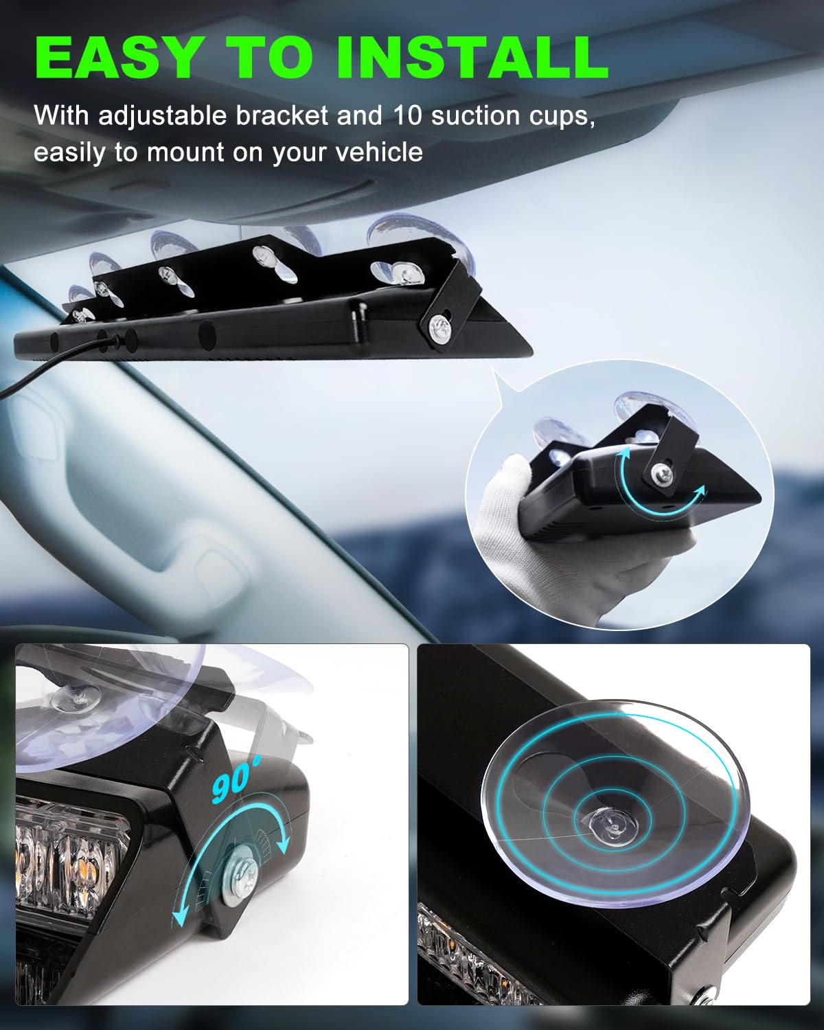 Hlauto 6Z4J Emergency Dash Strobe Lights: 2X16.8 Inch Green Safety Lights, 48 Led Flashing Warning Hazard Interior Windshield Vi