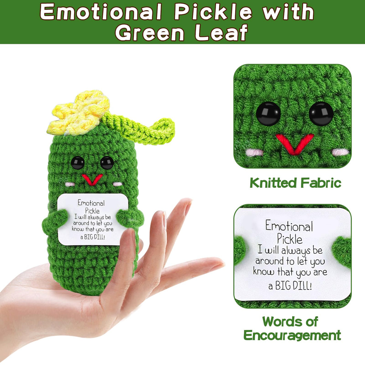 Hoedia Emotional Support Pickle With Green Leaf: Cucumber Crochet Dolls Friend Birthday Gifts For Women Men Coworkers Student -