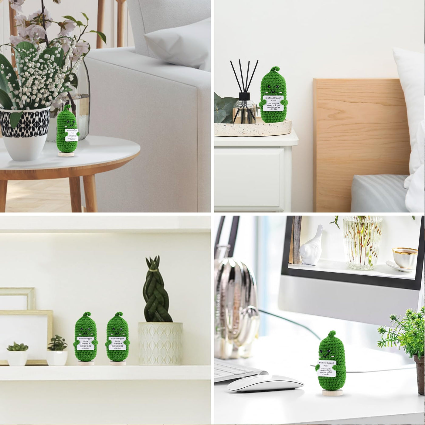 Handmade Emotional Support Pickle with Wooden Base Worry Doll Gift, Cute Crochet Cucumber Knitting Doll, Gifts for Friend Features: 1.Standard plush doll is knitted with wool, hand-stitched, making the doll more round and full. Soft and comfortable, delicate to the, excellent elasticity, no deformation when compressed. 2.Come with cards with heart-warming words, so when you feel lost and uneasy, just look at our dolls! 3.It is so cute and surprising to your, family and friends. Good-looking , each stitch and thread are hand-sewn by workers.