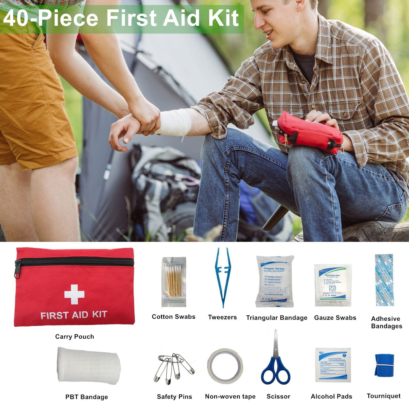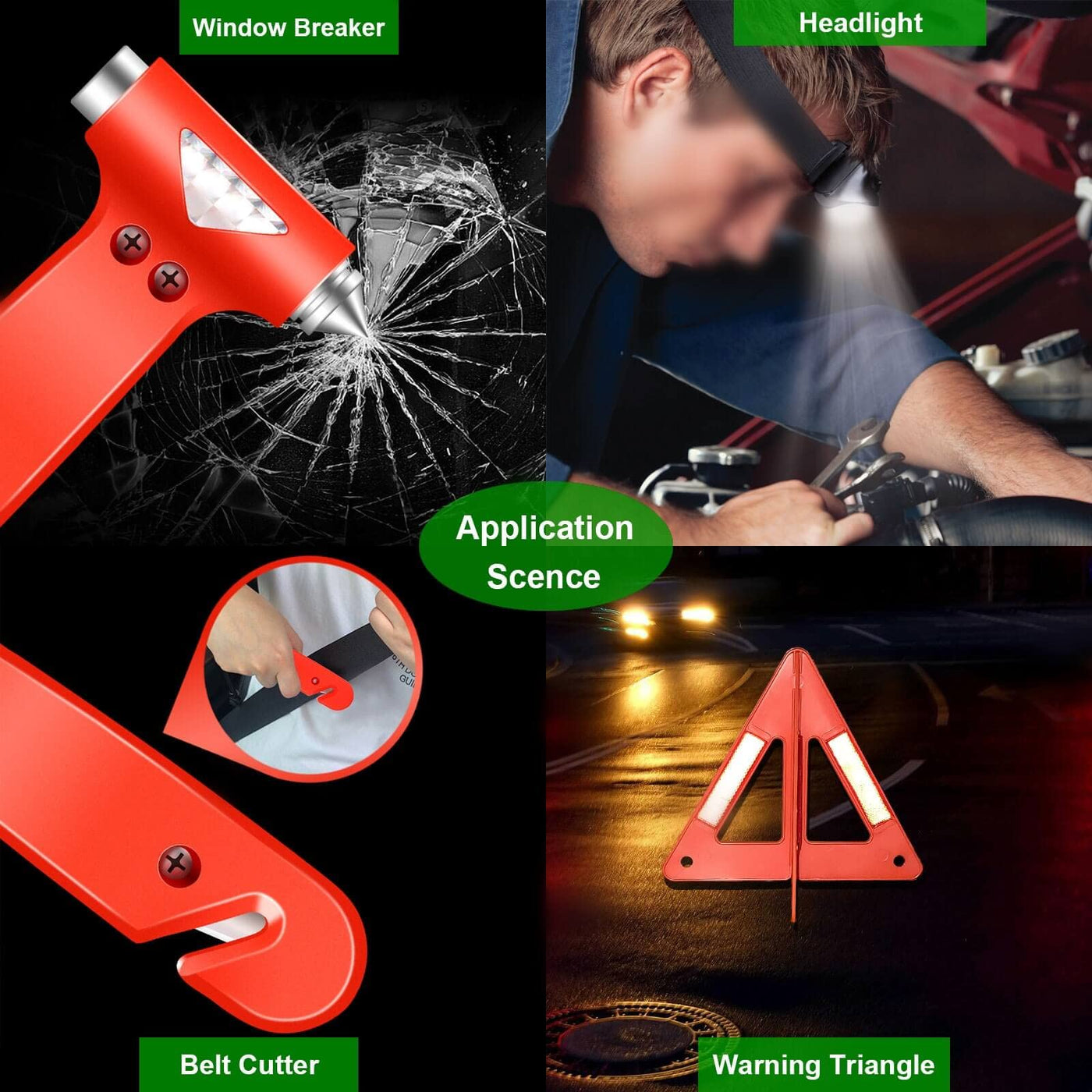 SPACIOUS & PRACTICAL This emergency roadside kit for car includes 78 crucial pieces, no more, no less, to ensure the space in the car first aid emergency kit is used to the best of its ability. This vehicle emergency kit does not waste space with unnecessary parts and includes a fire blanket to avoid any dangerous mishaps. This roadside emergency car kit is equipped with all of the useful pieces for any roadside trouble. ROAD TRIP READY This car kit emergency road kit is ideal for road trips. These road trip accessories are road trip essential for adults. While on a road trip, its important to have items that will make the ride less worrisome. Getting stranded on the side of the road with no jumper cables kit for car or any other road trip must haves.