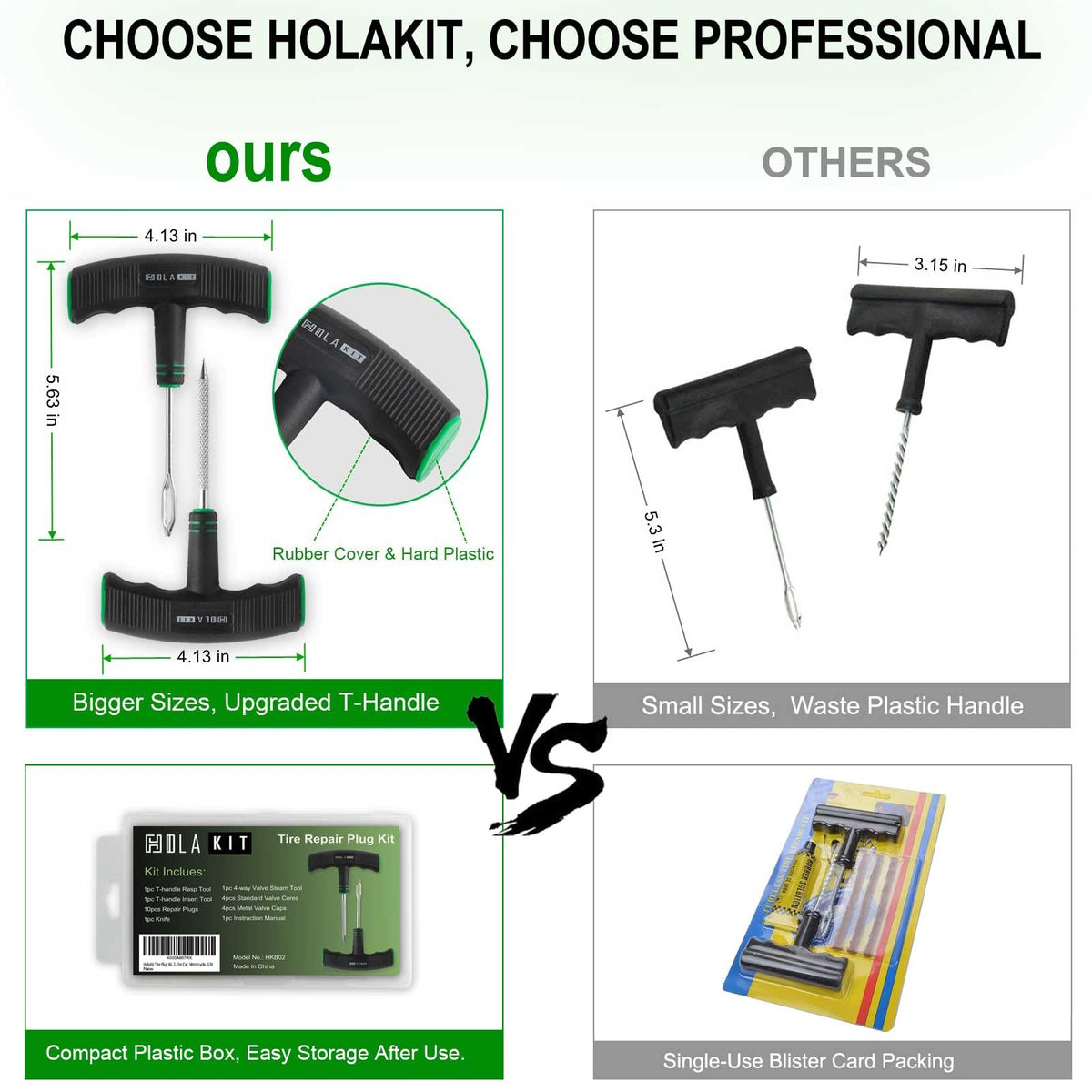 Holakit Tire Plug Kit, 22Pcs Compact Tire Repair Kit With Rubber Plugs, Upgrade T-Handle, 4-Way Valve Steam Tool, Flat Tire Puncture Repair Tools For Cars, Motorcycle, Atv, Suv