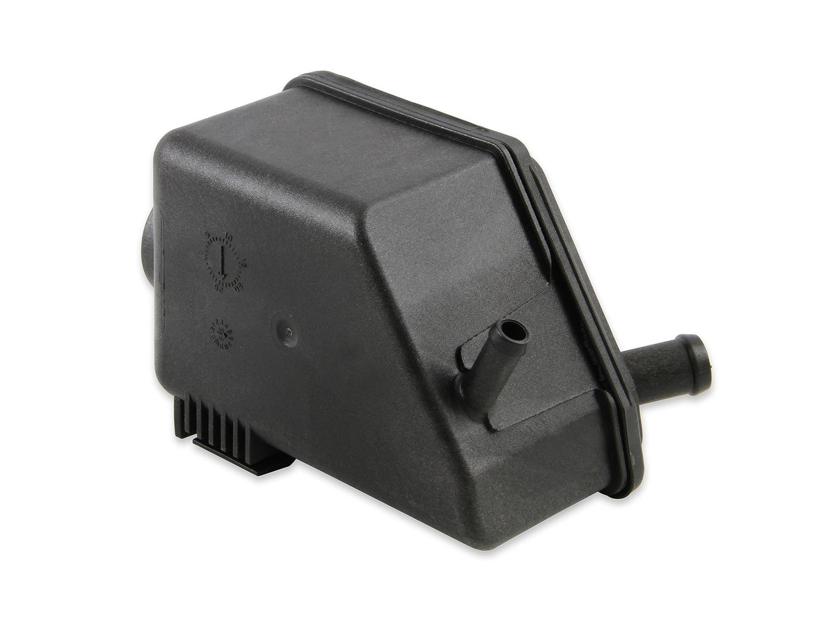 Q: What materials are used in the construction of the Holley 198-200 P/S Reservoir Kit?A: The Holley 198-200 P/S Reservoir Kit is made from high-quality plastic, ensuring durability and resistance to various automotive fluids.
