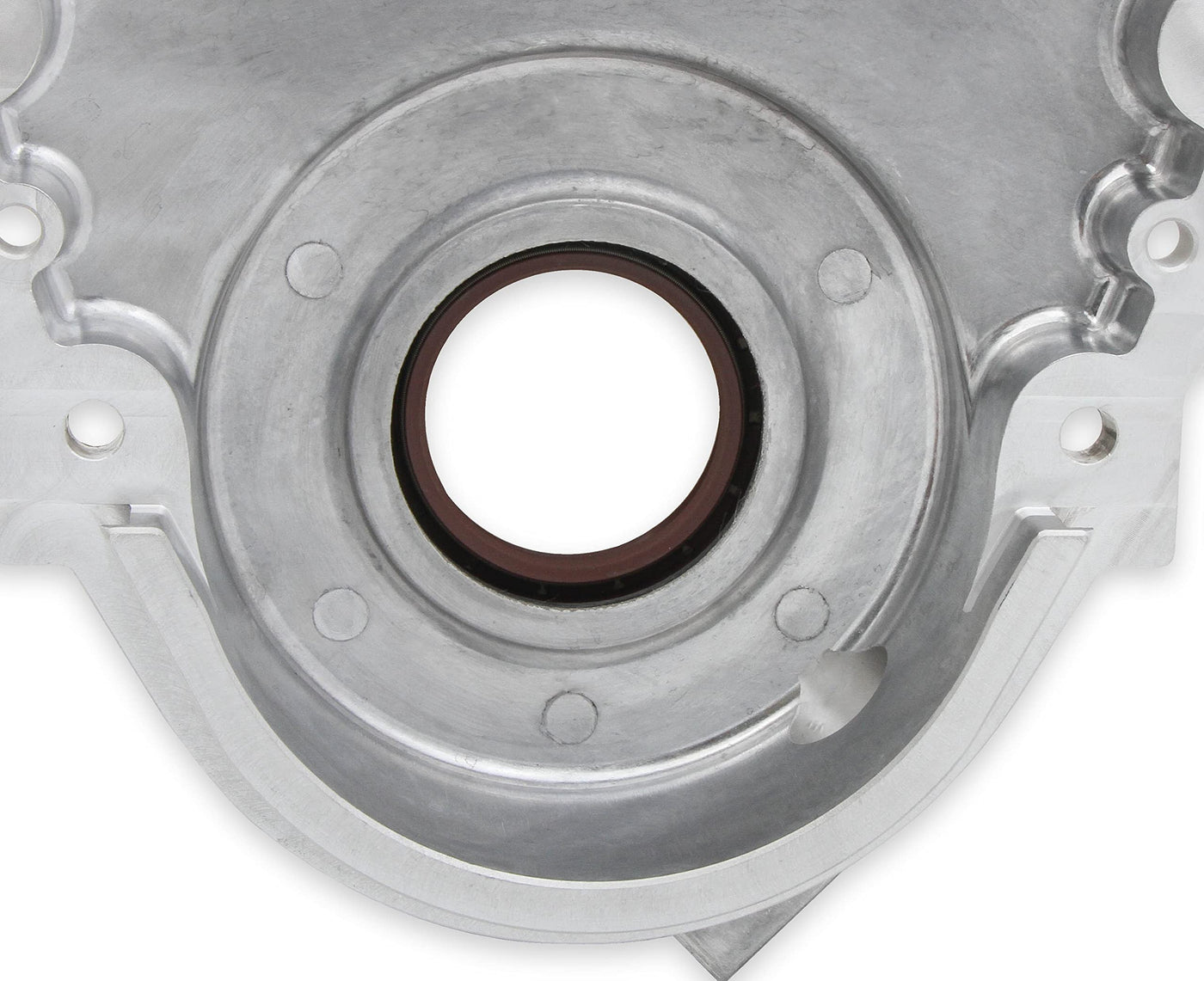 Q: Does the Holley Timing Chain Cover come with any additional components?A: Yes, the Holley Timing Chain Cover includes an over-molded FKM oil seal, which helps prevent issues with the seal spinning out at high temperatures, a common concern with other aluminum covers.