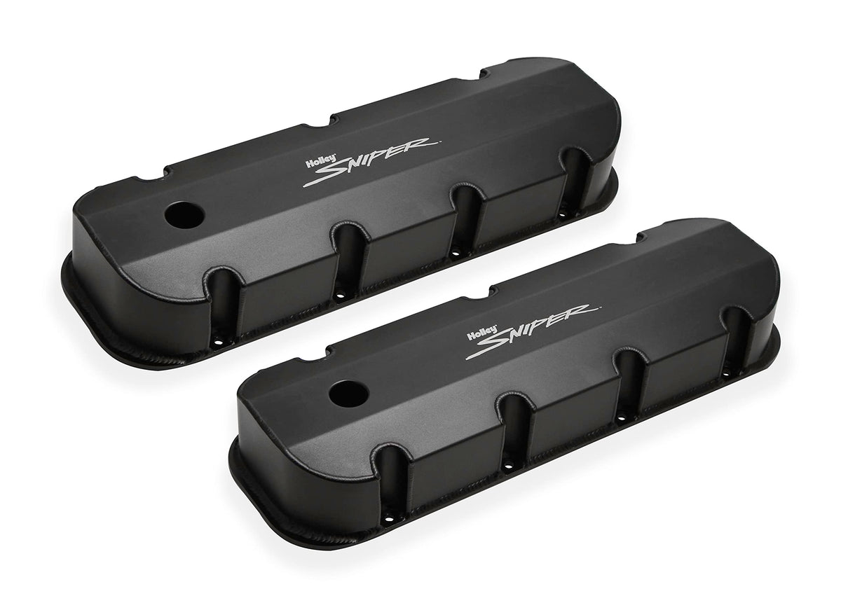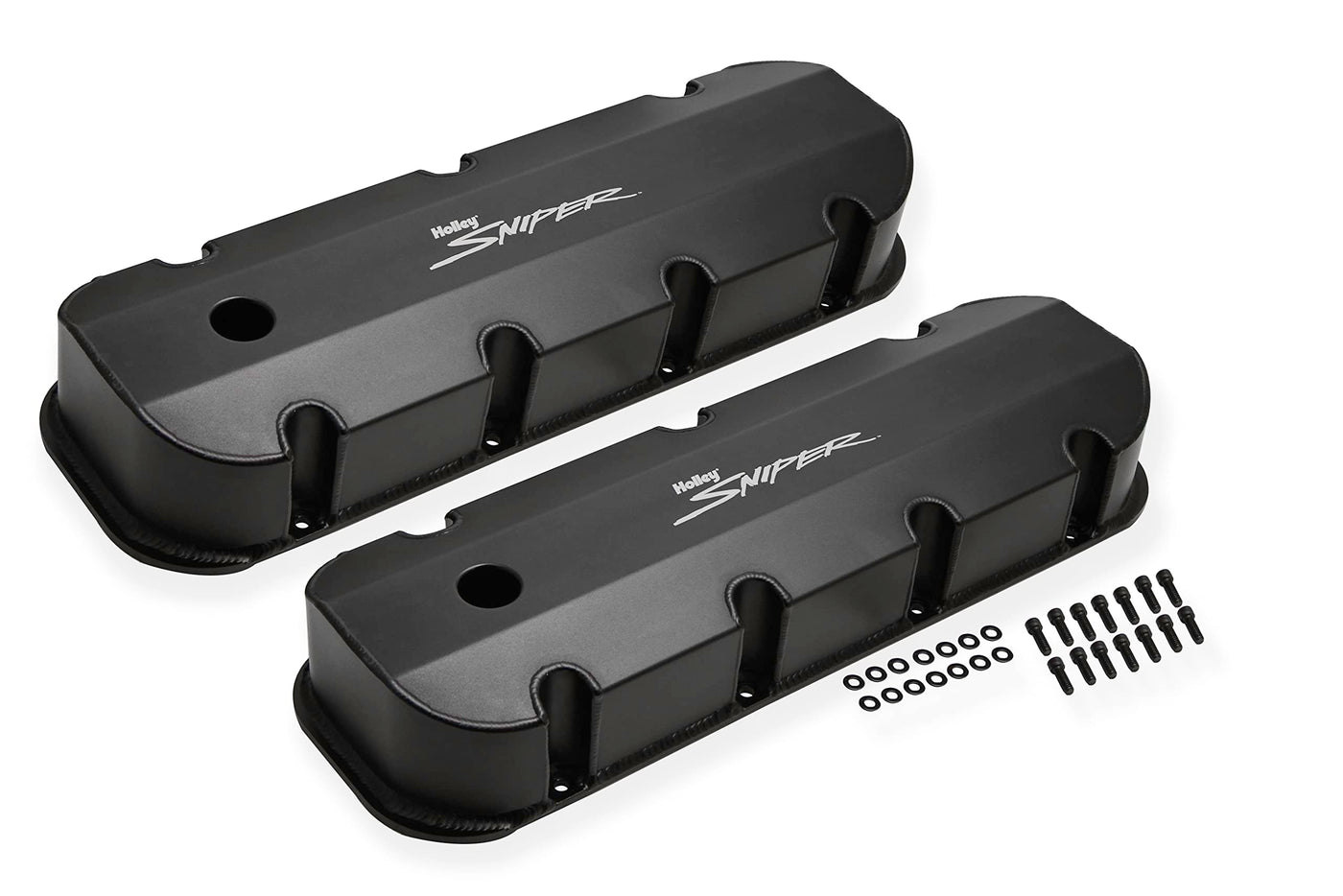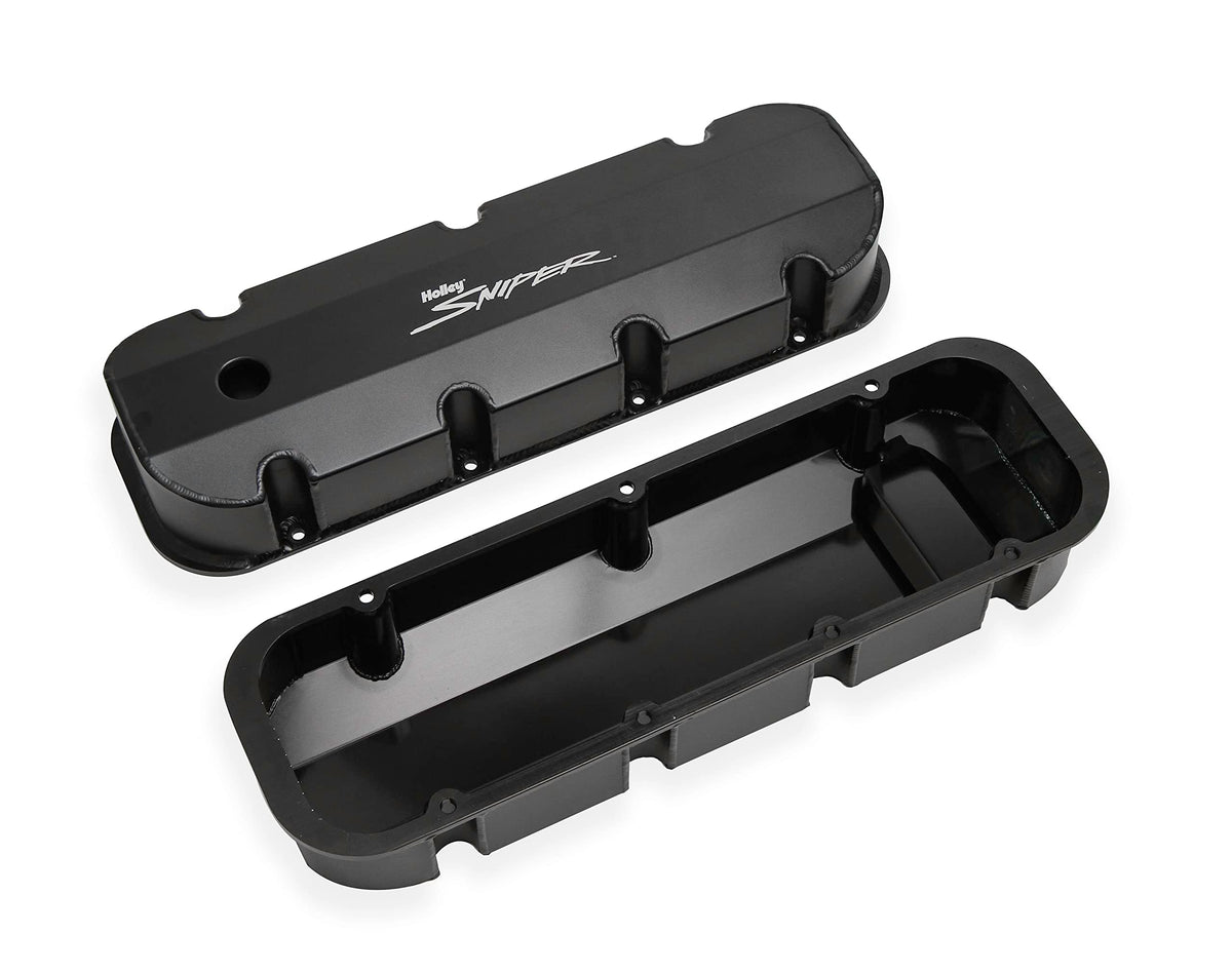 Holley 890004B Aluminum Valve Cover Set Tall Style W/Baffle/Smooth Hole Pair Black Finish Aluminum Valve Cover Set