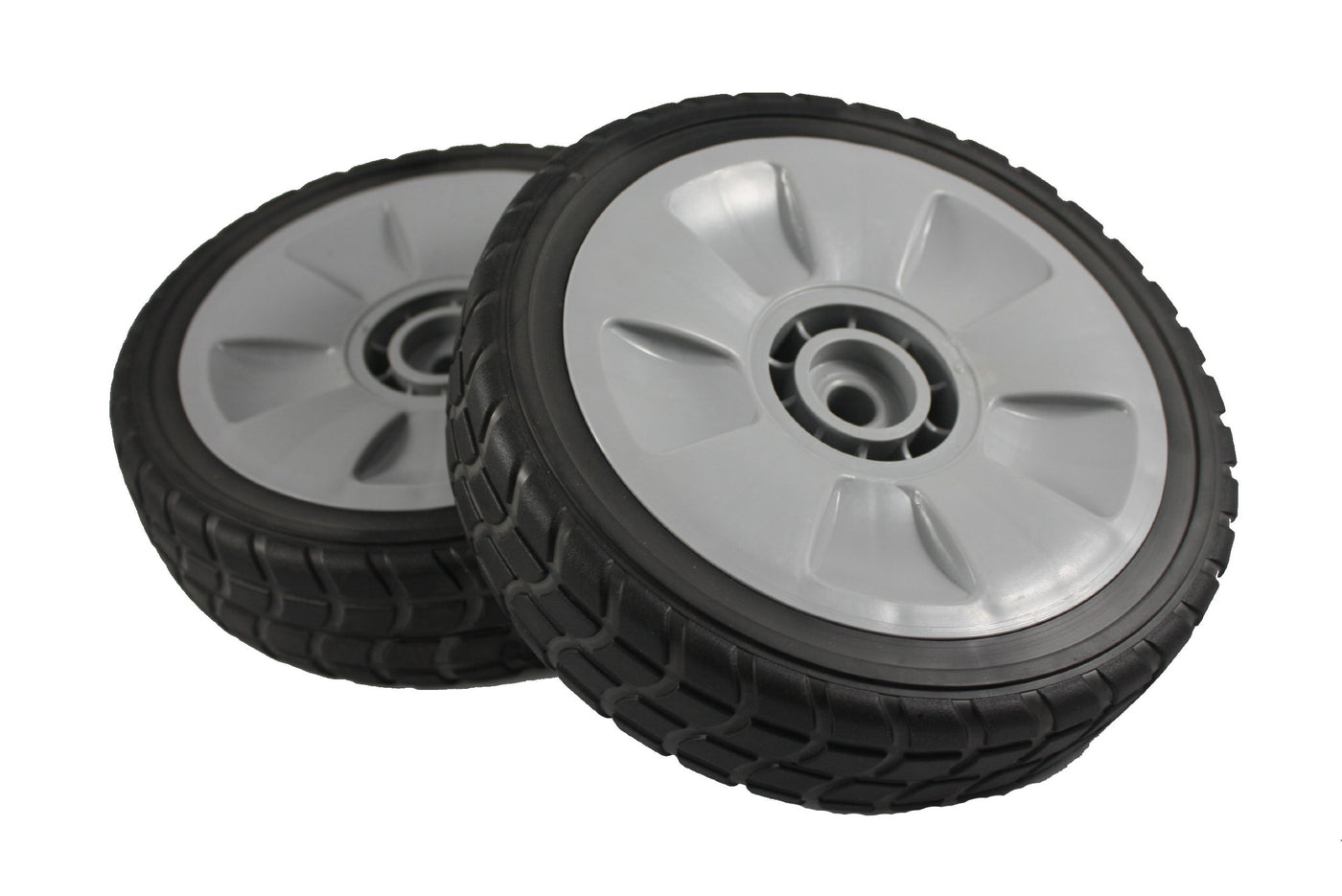 Q: What is the material of the Honda 44710-VG3-010 Front Wheels?A: The Honda 44710-VG3-010 Front Wheels are made of Polyvinyl Chloride (PVC), ensuring durability and long-lasting performance under various mowing conditions.