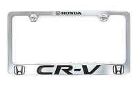 Show off your Honda pride with this polished top-quality solid Zinc official Honda license frame with the CR-V wordmark. Made of solid Zinc metal. Great quality frame on the market. Exceeds all OE standards. Chrome Plated with clear coating for protection. 2-hole style frame design. Precision engraved and hand epoxy color-filled, plus hand polished. Comes with matching screw covers and packaged for protection. Standard US and Canada frame size. Makes a great gift for a new Honda owner. Not for states with lower DMV plate tags on bottom corners. If your states DMV tags go on the lower corners of your plate, you would need the HOZE1-17-UF. Official licensed product of Honda.
