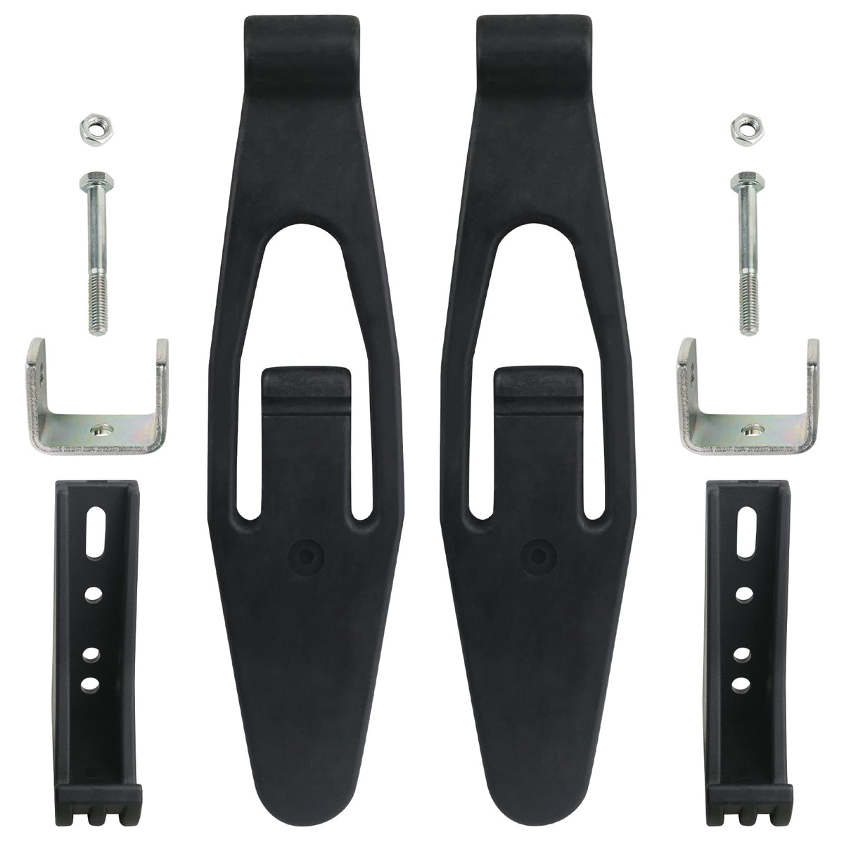 Q: How do I install the Hood Latch Strap and Catch Bracket Kit?A: Installation is straightforward. The kit includes all necessary components: 2 Hood Straps, 2 Hook Catches, 2 Brackets, 2 Bolts, and 2 Nuts. Simply detach the old components and follow the included instructions for mounting the new parts securely on the front engine hood, ensuring they are positioned correctly on the left driver side and right passenger side.