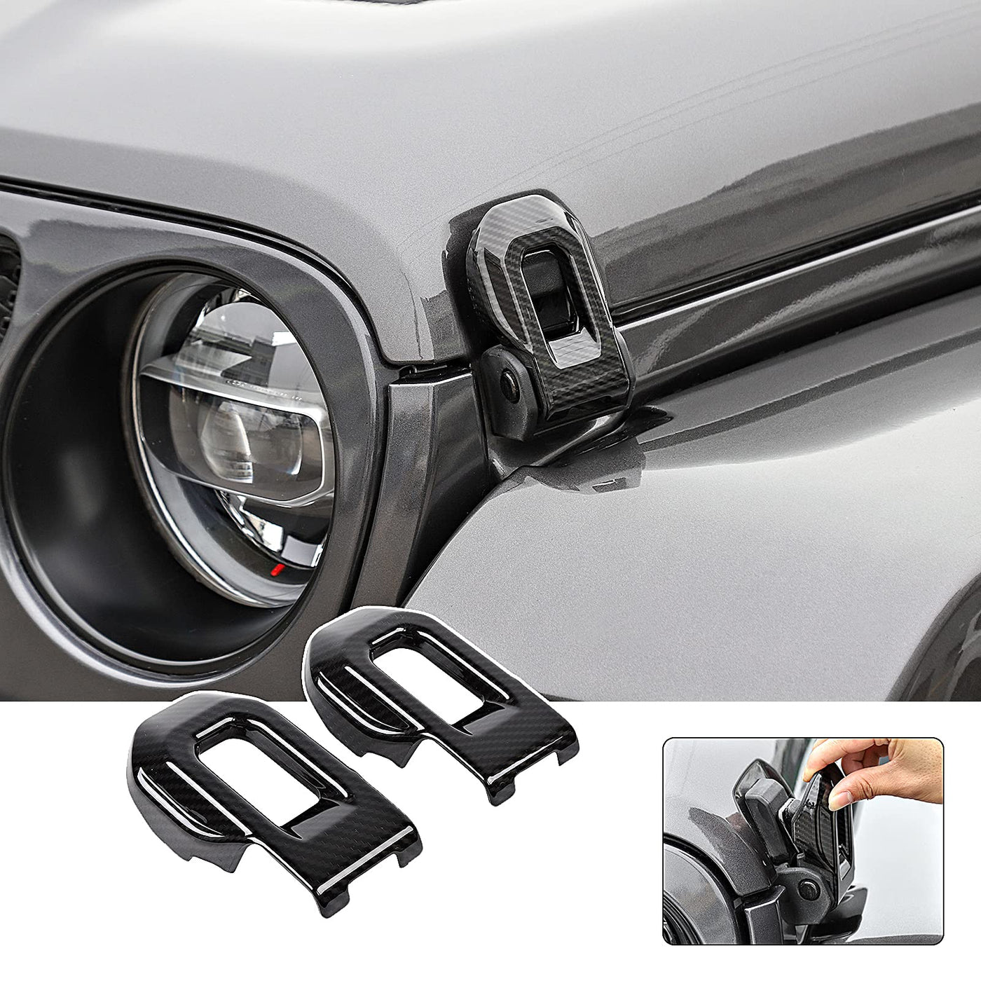 Q: Does the carbon fiber design of the Hood Latch Cover enhance my car's appearance?A: Yes, the carbon fiber finish provides a stylish upgrade to your Jeep, adding a custom look and enhancing its overall aesthetic.