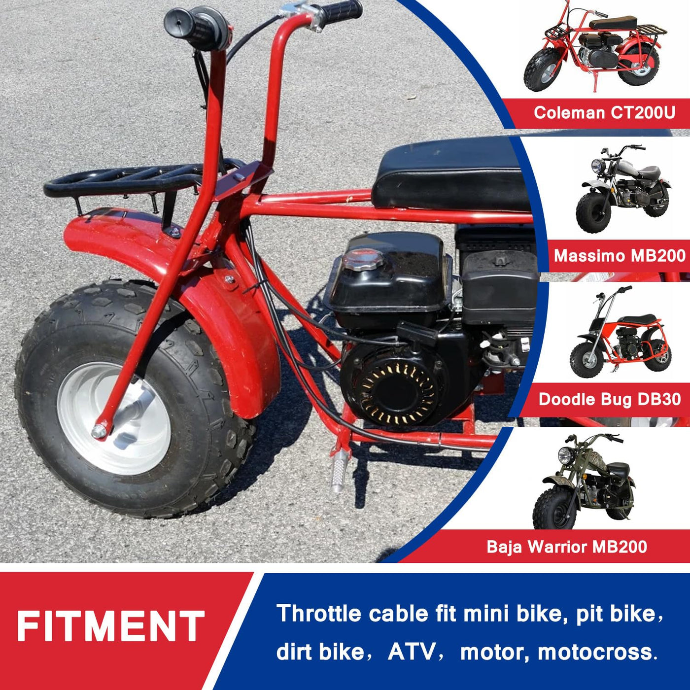 Q: What mini bikes is the HOOUP throttle cable compatible with?A: The HOOUP 1270mm throttle cable is compatible with various mini bikes including Coleman CT100U, CT200U, BT200X, Motovox MBX10, Baja Doodle Bug DB30, and many others ranging from 50cc to 250cc 4 stroke dirt bikes.
