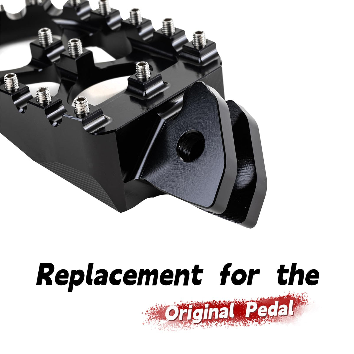 • Q: How do the removable sharp teeth on the foot pegs enhance performance? A: The removable and replaceable sharp teeth made from hardened steel provide a uniform and stable grip on your shoes during riding, significantly improving anti-slip performance.