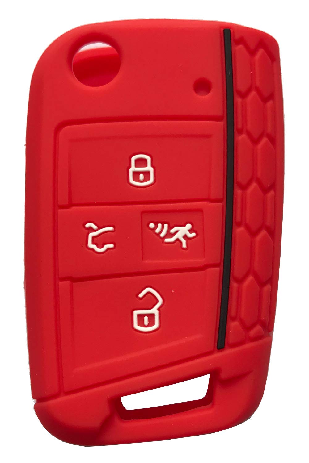 Horande 4 Button Silicone Key Cover Case Remote Fob Protector Fit For Vw 2016-2017 Golf Polo Gti 2018 2019 Tiguan Keyless Entry