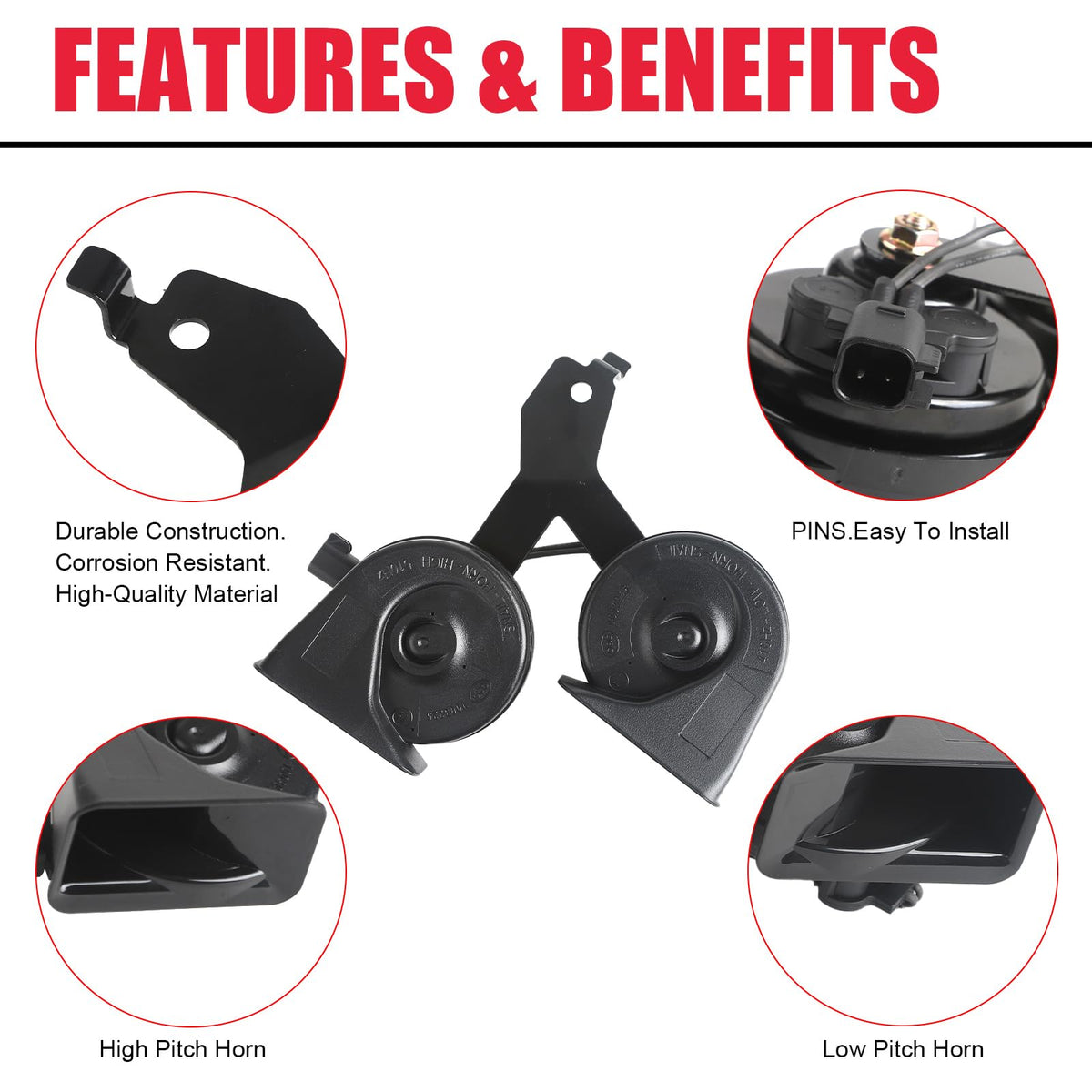 Advantage: Made of High Quality Material. Tested & Certified to Meet or Exceed OEM Quality Standards. Compatible : 2009-2014 Ford F150 Product Parameter : Voltage:42V-56V Current:4.20.3A Sound Pressure: =106-115d Adaptive Temperature: -40F - 257F Ingress Protection Rating: IP67 Warranty: The Horn Assembly come with 12 Months Warranty. hassle-free Return and Refund Policy. Please Buy it with Your Confidence.
