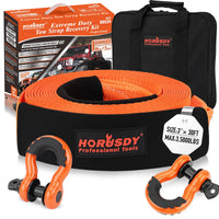 Horusdy Nylon Heavy Duty Tow Strap Recovery Strap With Hooks 3'' X 30Ft - 35,000 Lbs Break Strength, 3/4 D Ring Shackles (2Pcs),