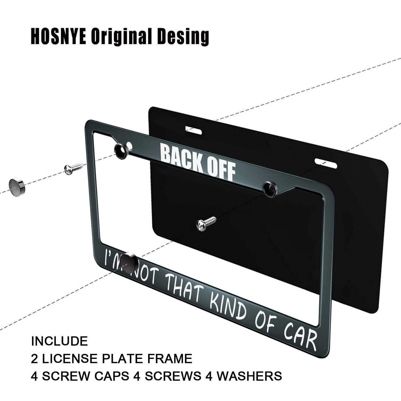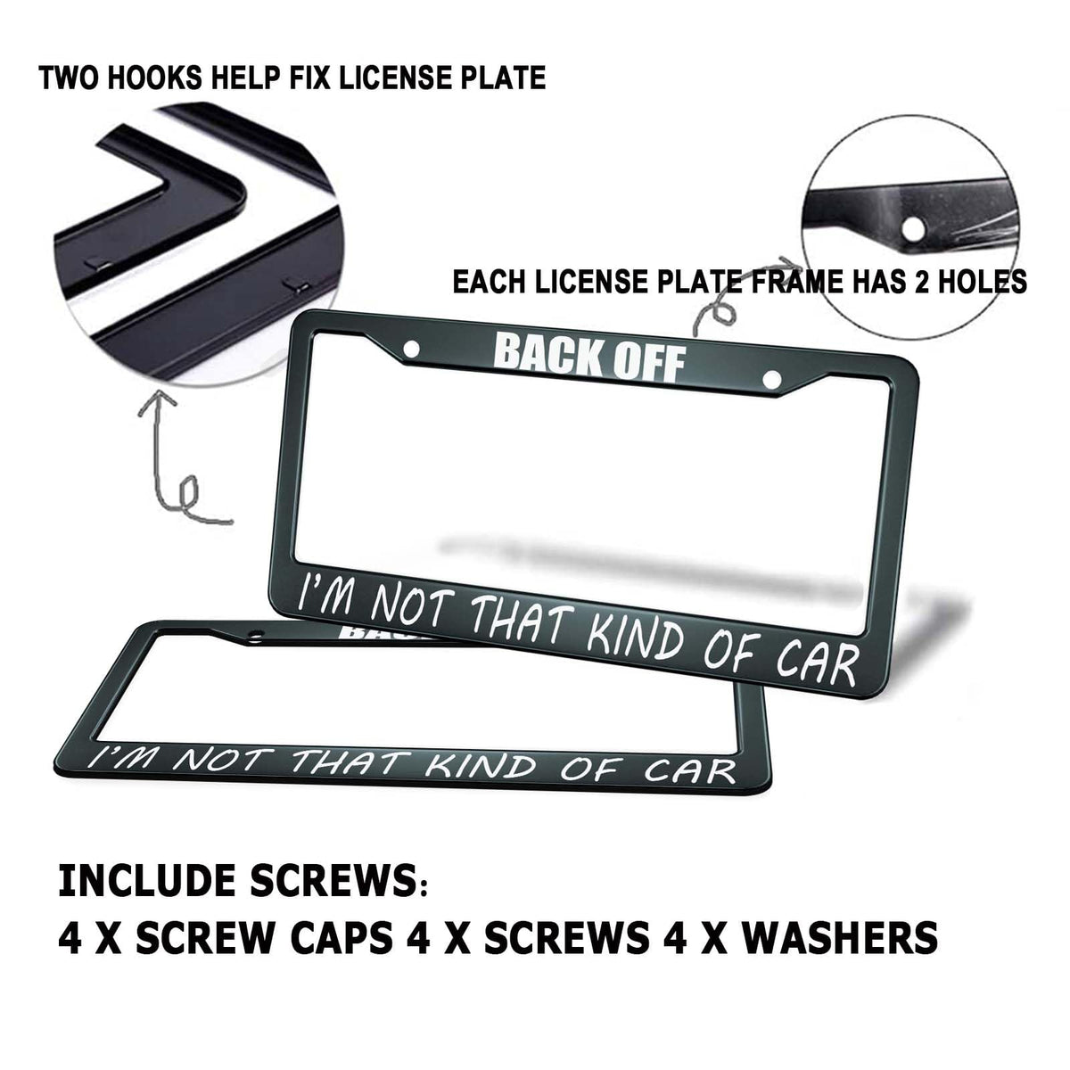 HOSNYE Back Off I'm Not That Kind of Car License Plate Frame Black 2 Pcs Metal Cute Licenses Plates Frames Licenses Plate Covers