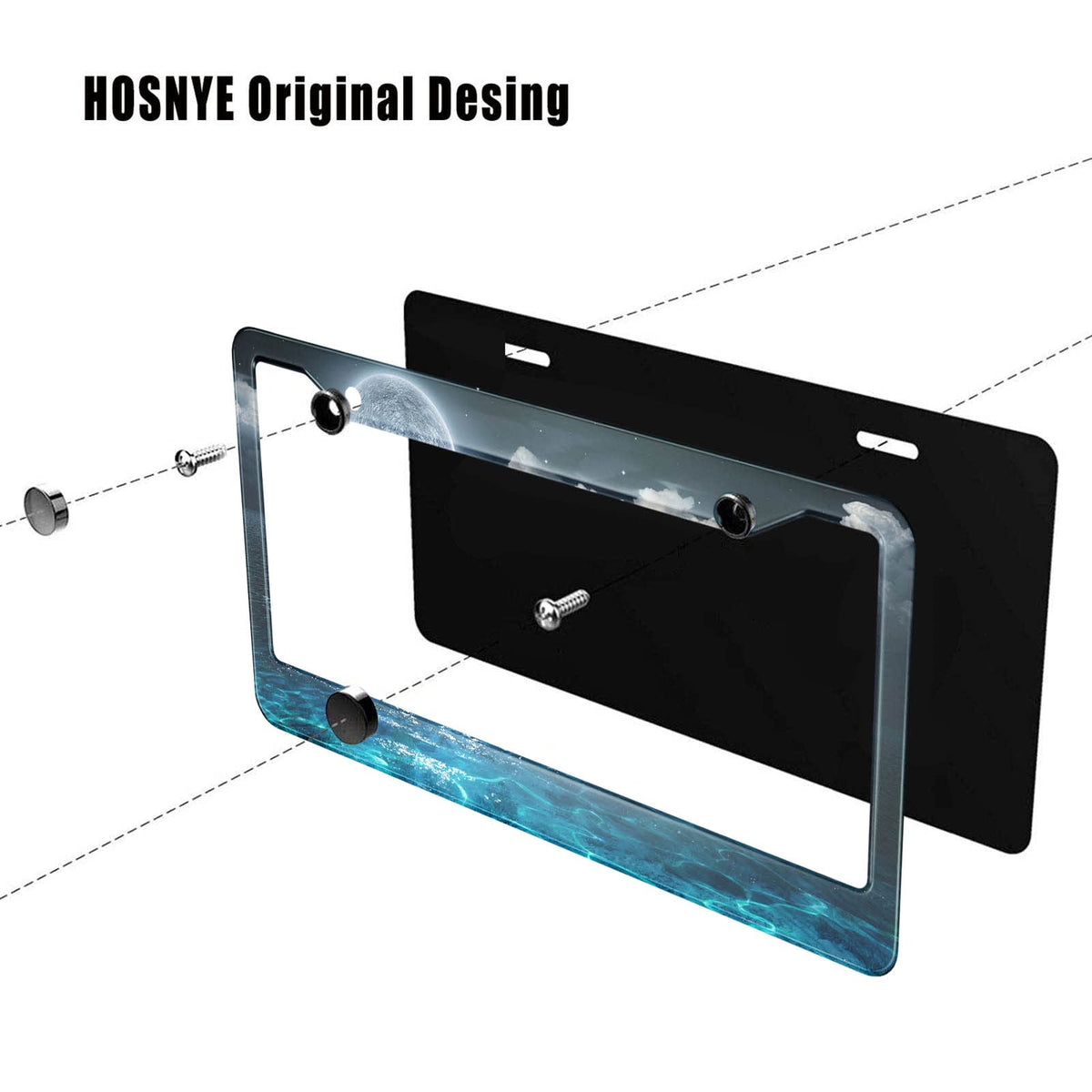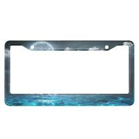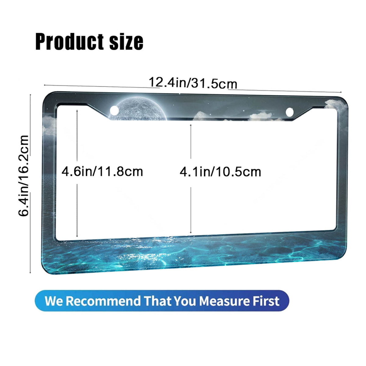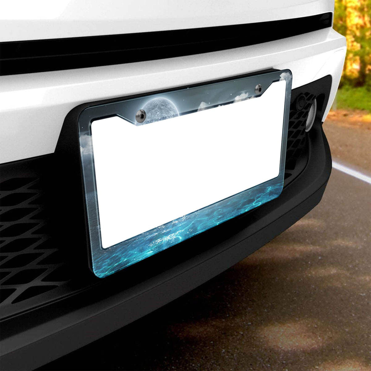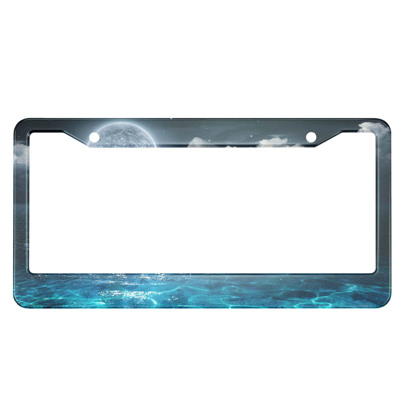 HOSNYE Full Moon on Sea License Plate Frame Night Romantic and Scenic Panorama Metal License Plate Cover Front Plates Frames Car