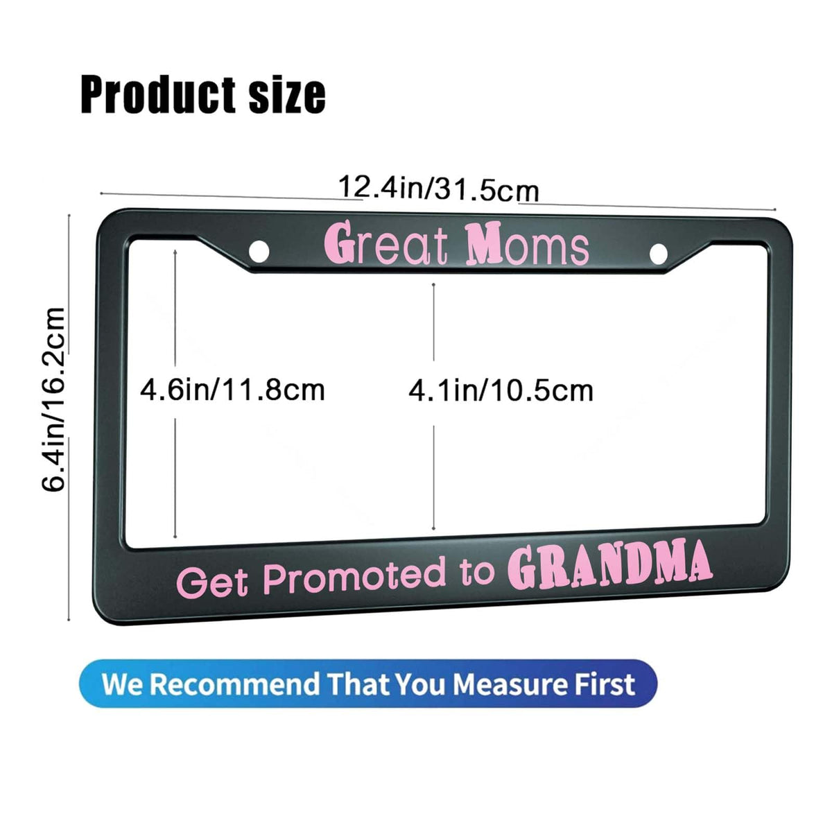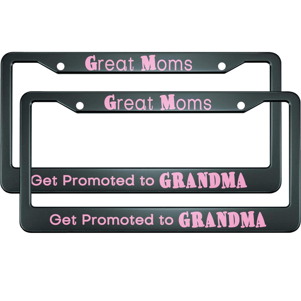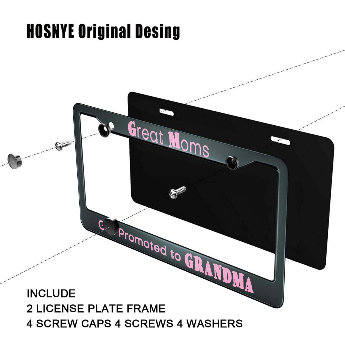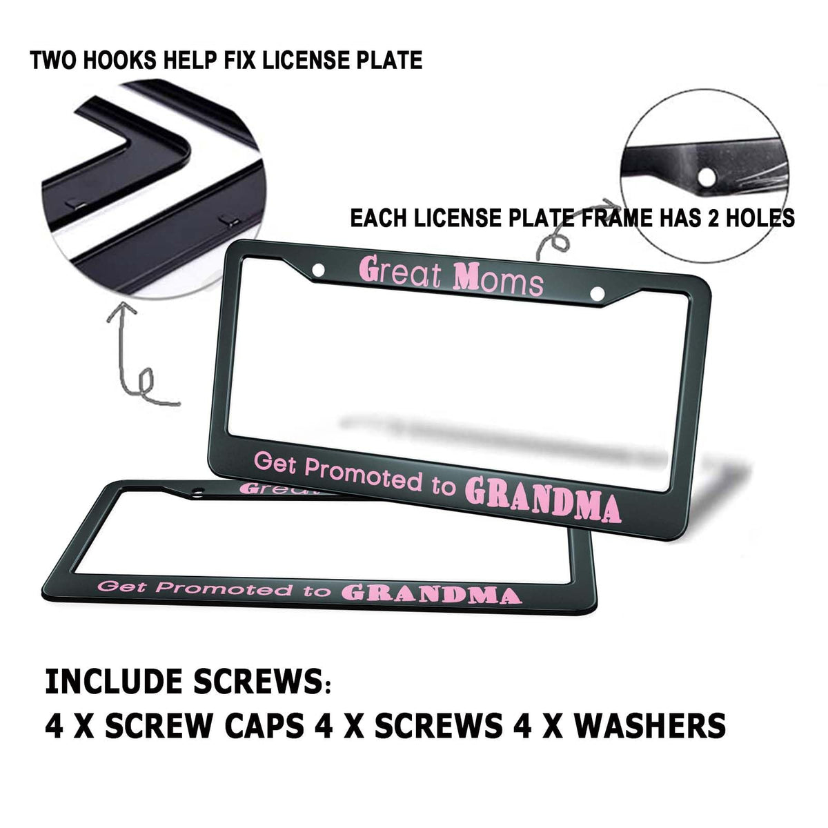 HOSNYE Great Moms Get Promoted to Grandma License Plate Frame Black 2 Pcs Metal Cute Licenses Plates Frames Licenses Plate Cover