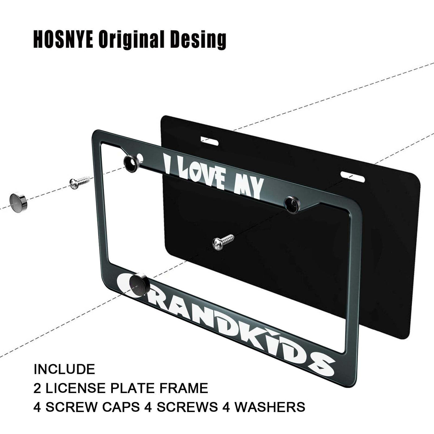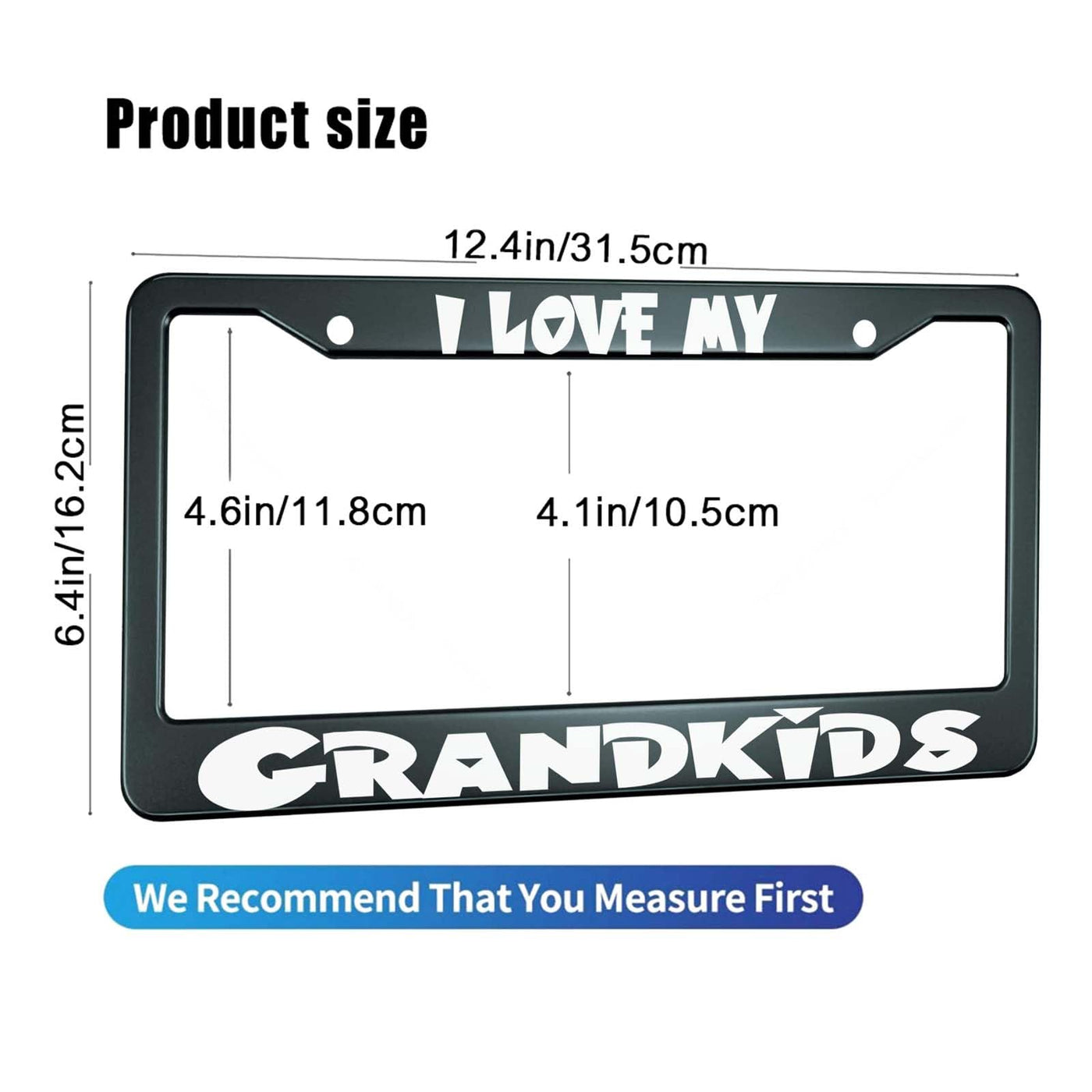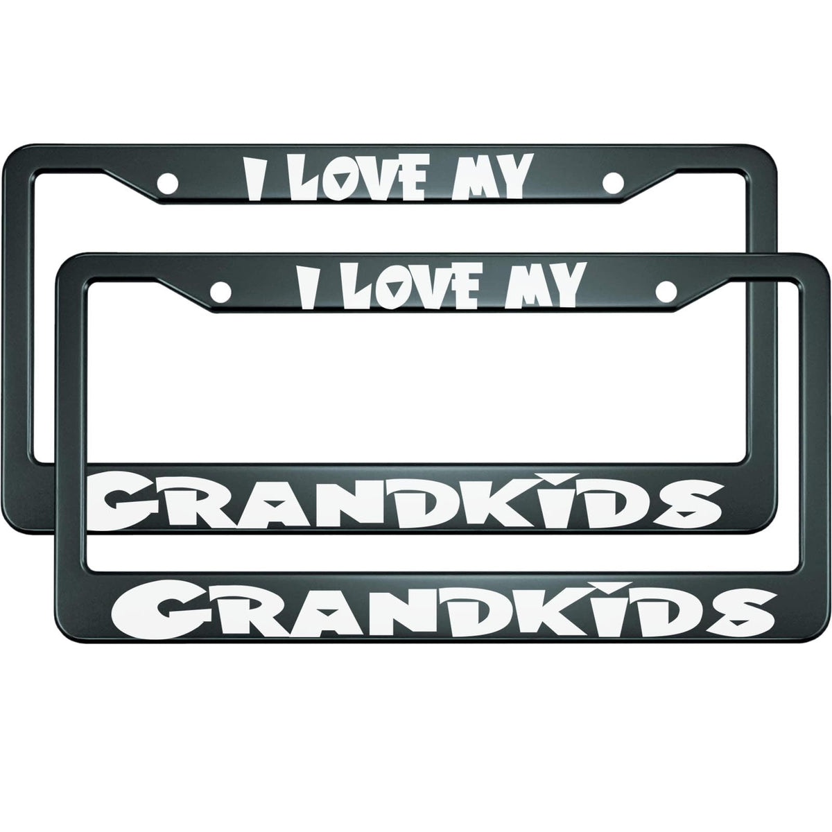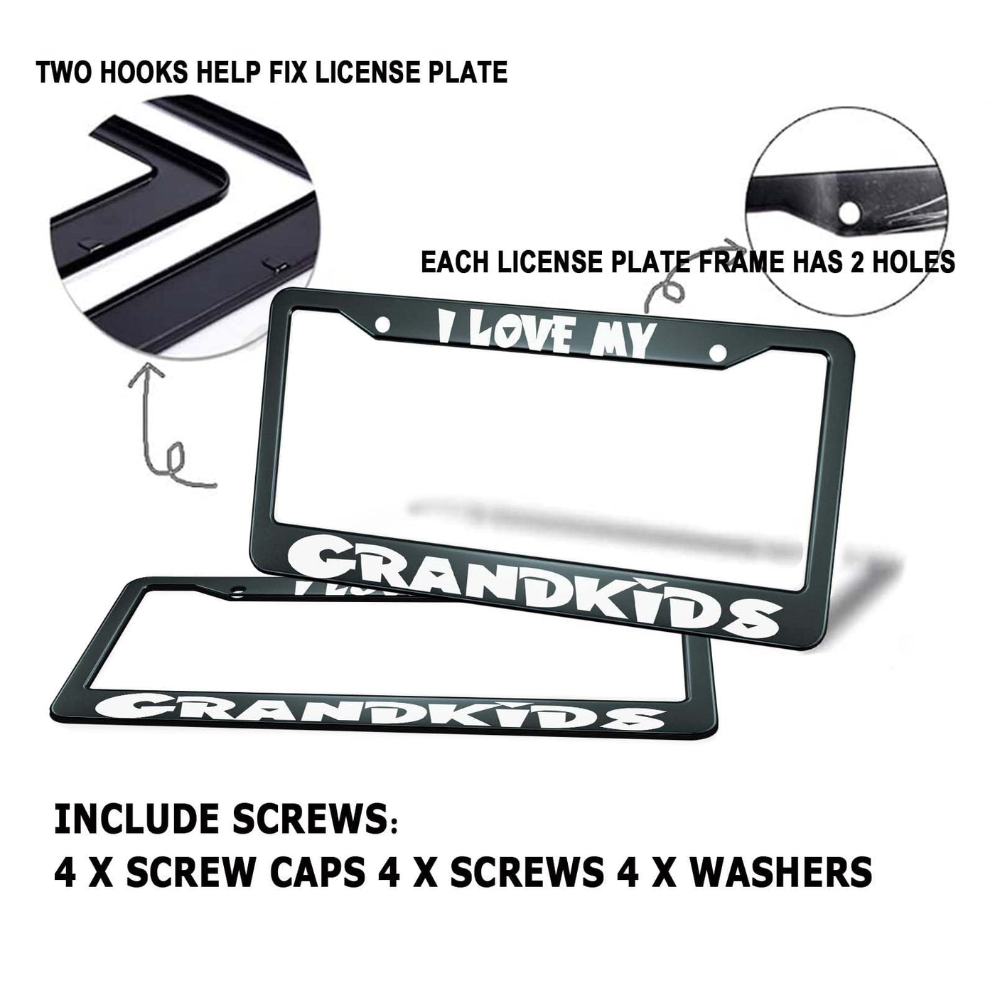 HOSNYE I Love My Grandkids License Plate Frame Black 2 Pcs White Color Cute Metal Cute Licenses Plates Frames Licenses Plate Cov