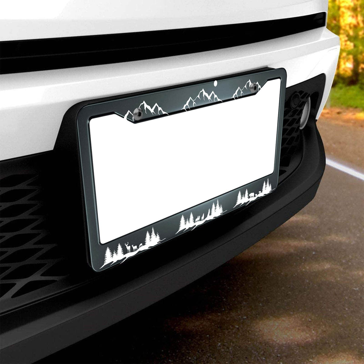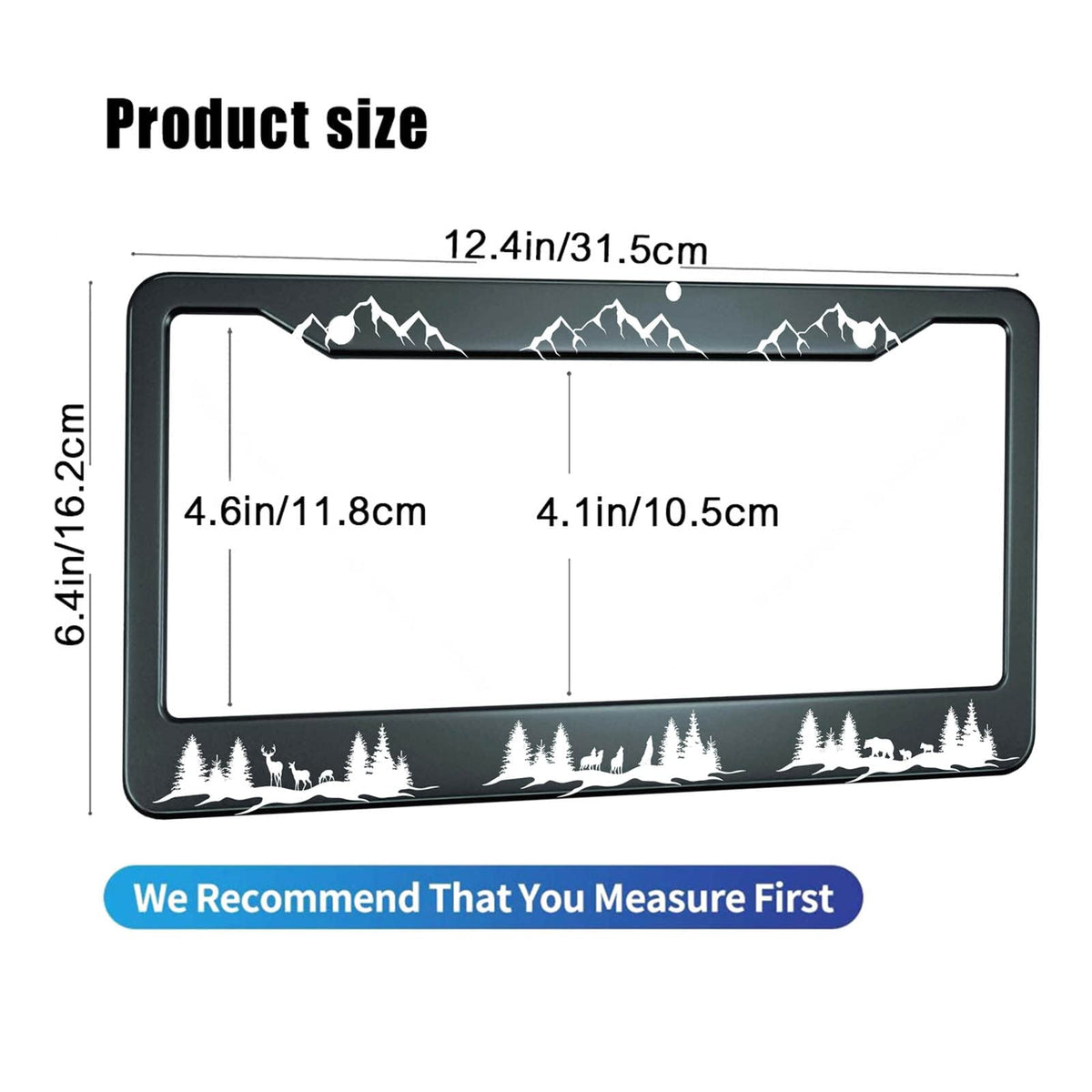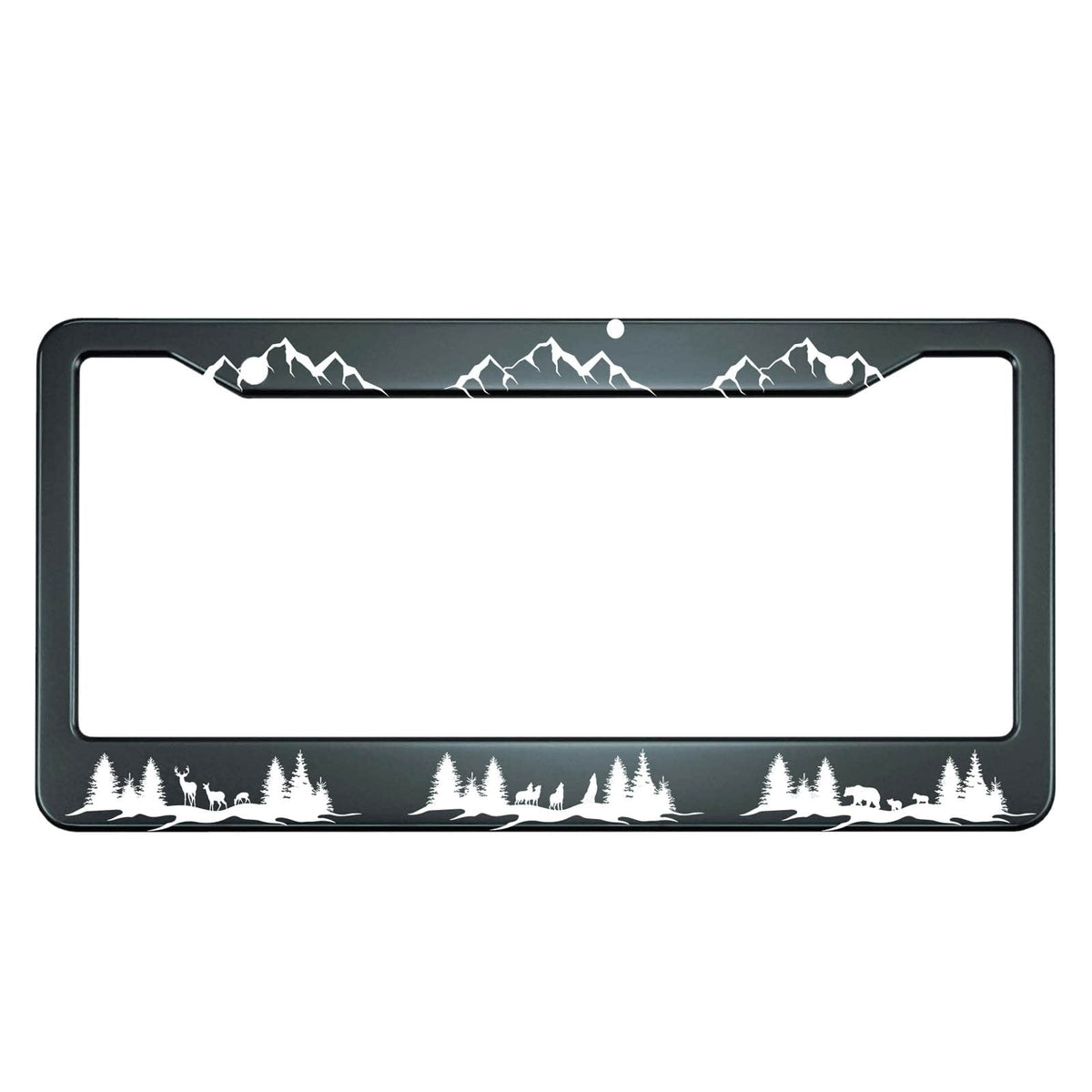Hosnye Mountains License Plate Frame Deer, Bear, Wolf And Fox Silhouette Of Wild Animals Metal License Plate Cover Front Plates