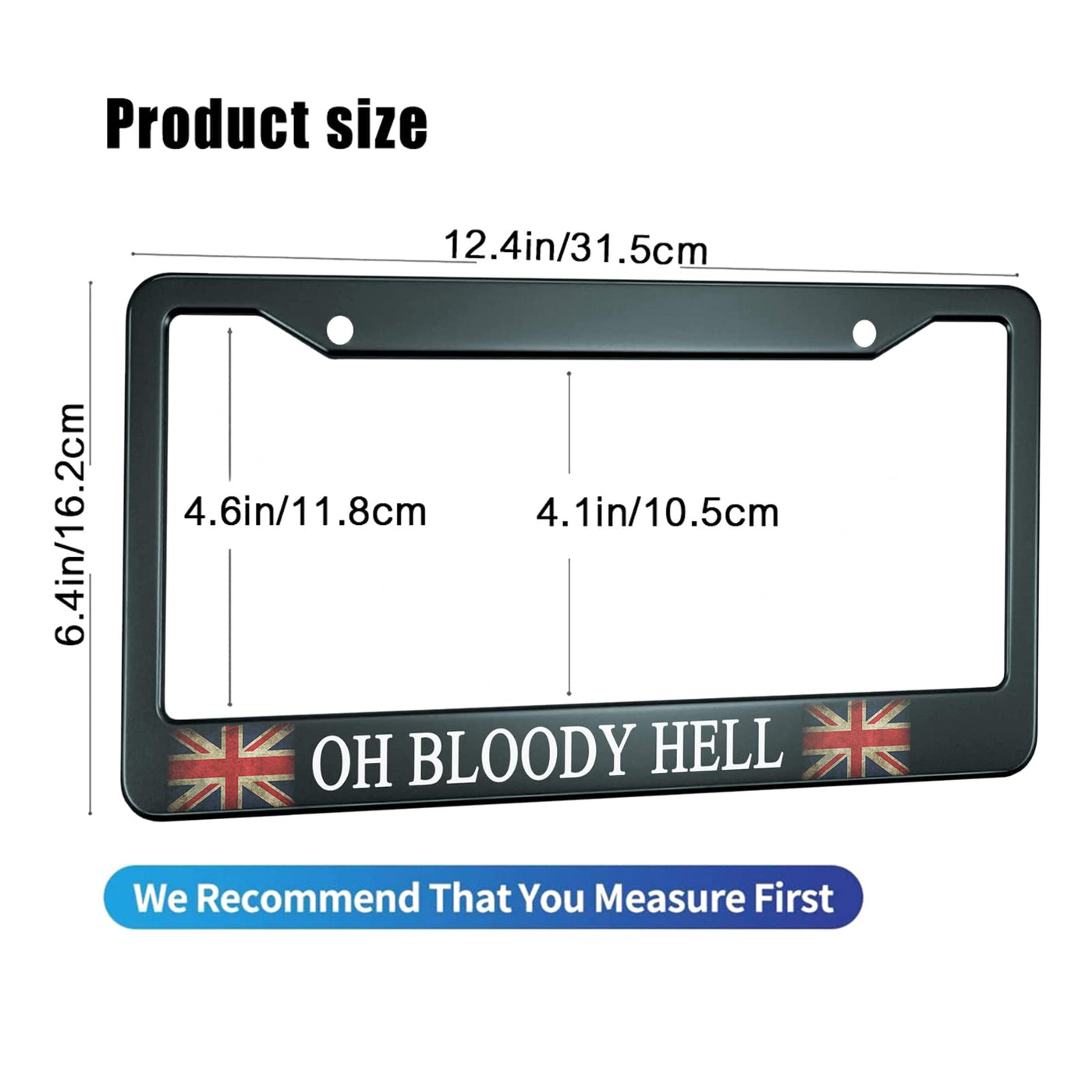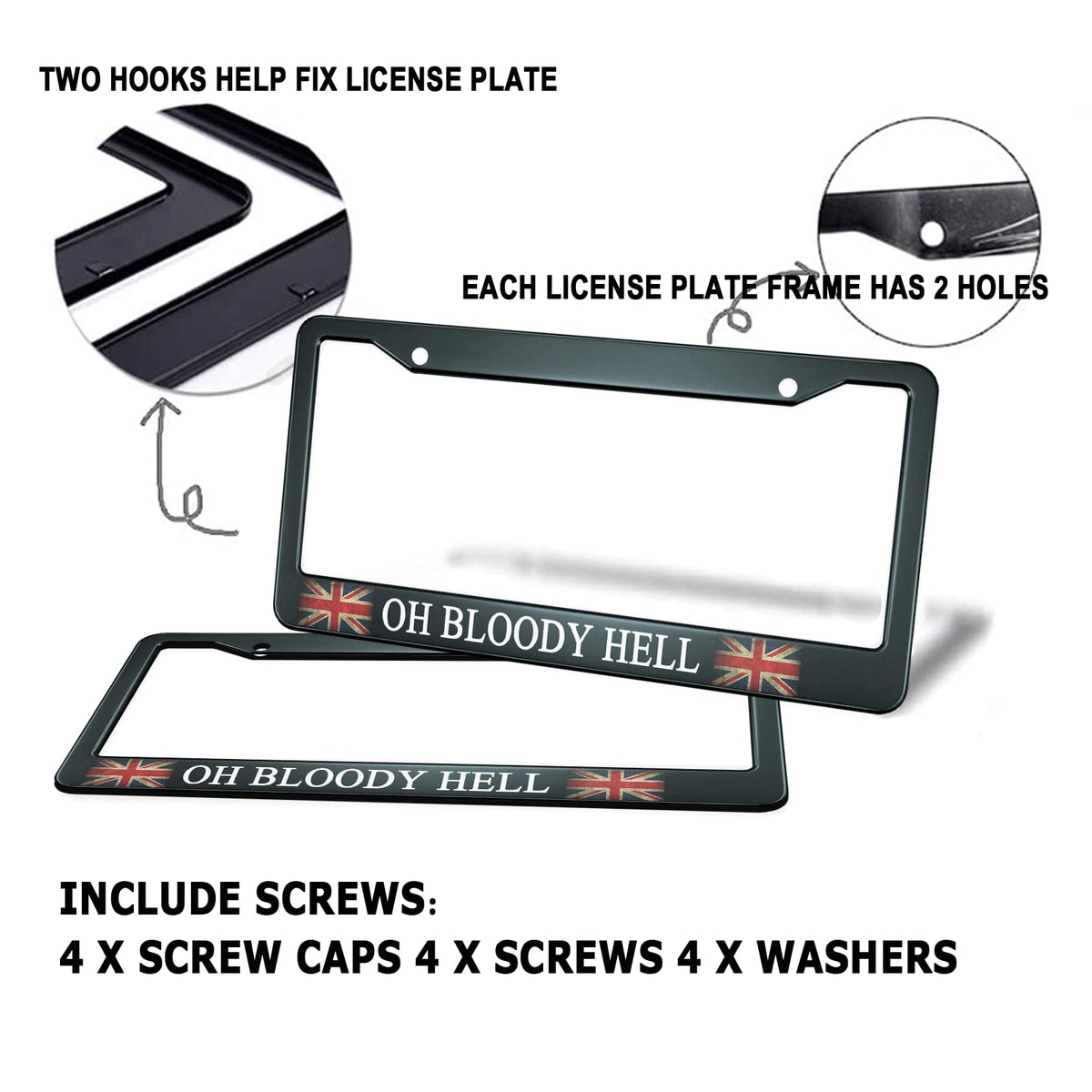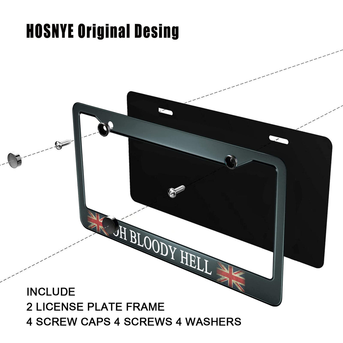 HOSNYE Oh Bloody Hell License Plate Frame Black 2 Pcs Old British England Flag Metal Cute Licenses Plates Frames Licenses Plate