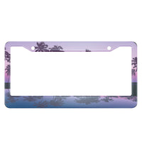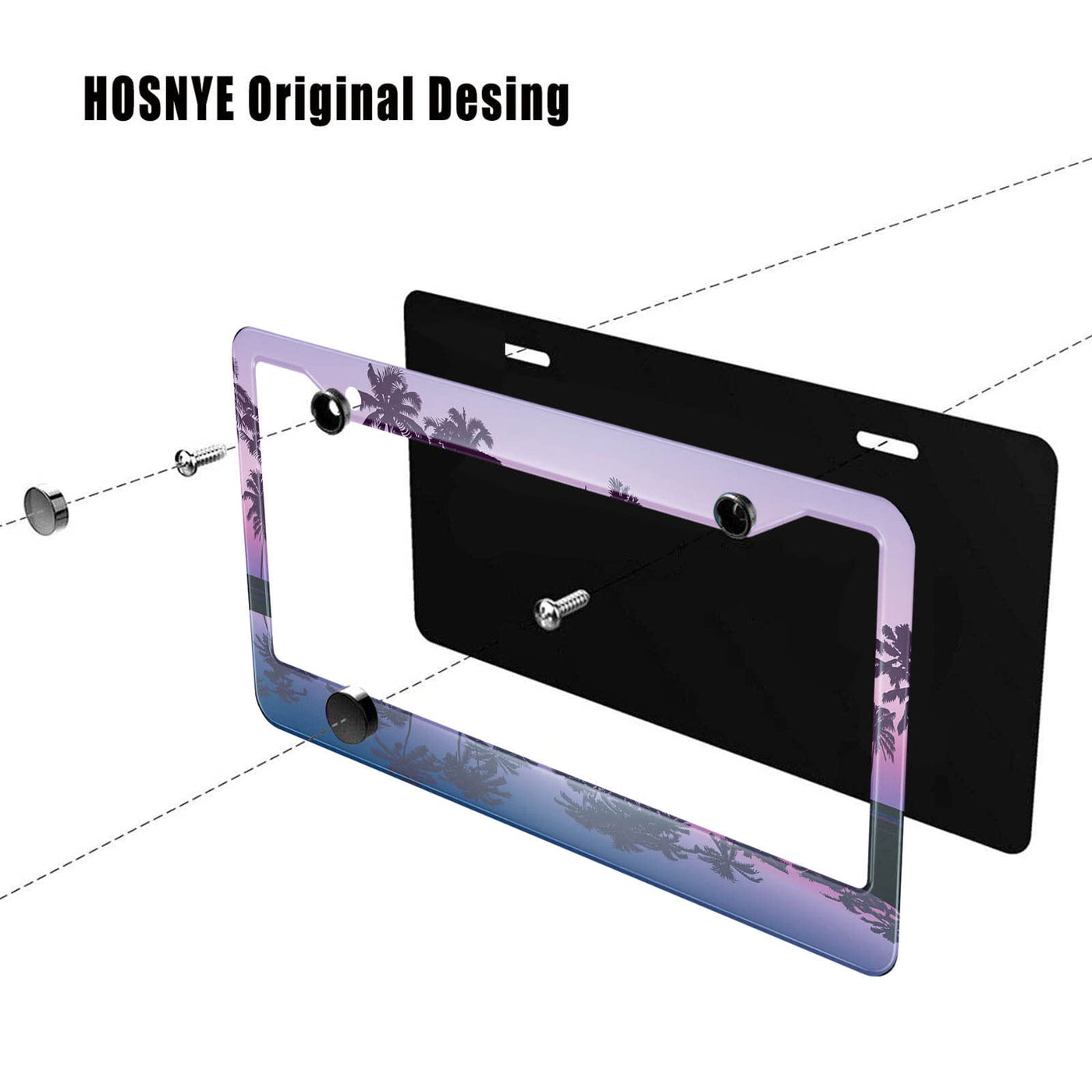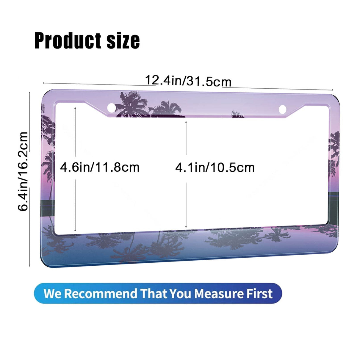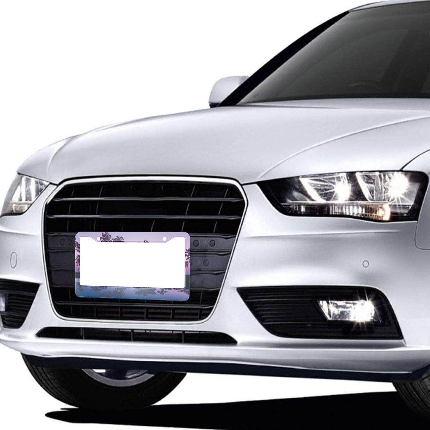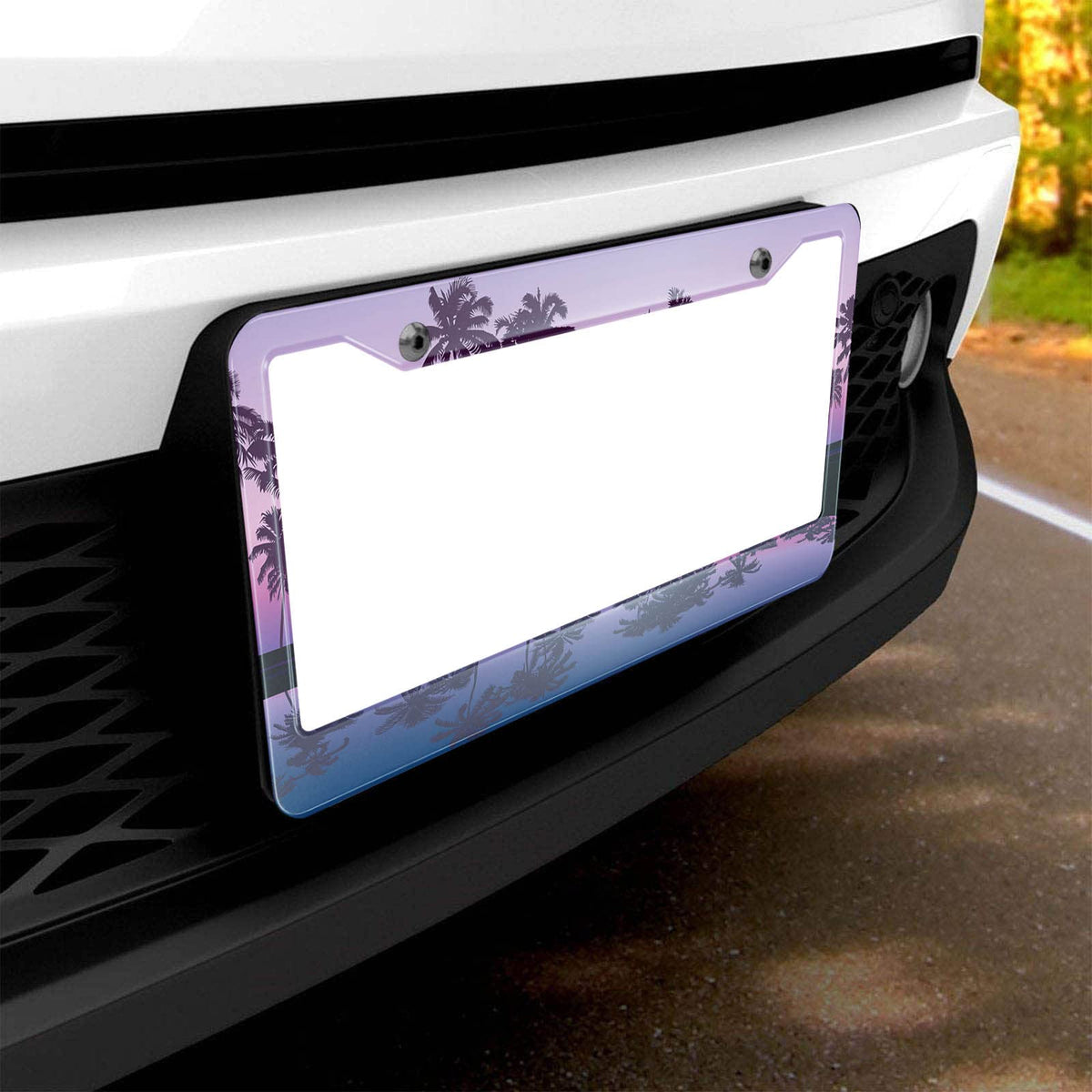 HOSNYE Palm Tree License Plate Frame Tropical Seashore Night Silhouettes Moonlight Metal License Plate Cover Front Plates Frames