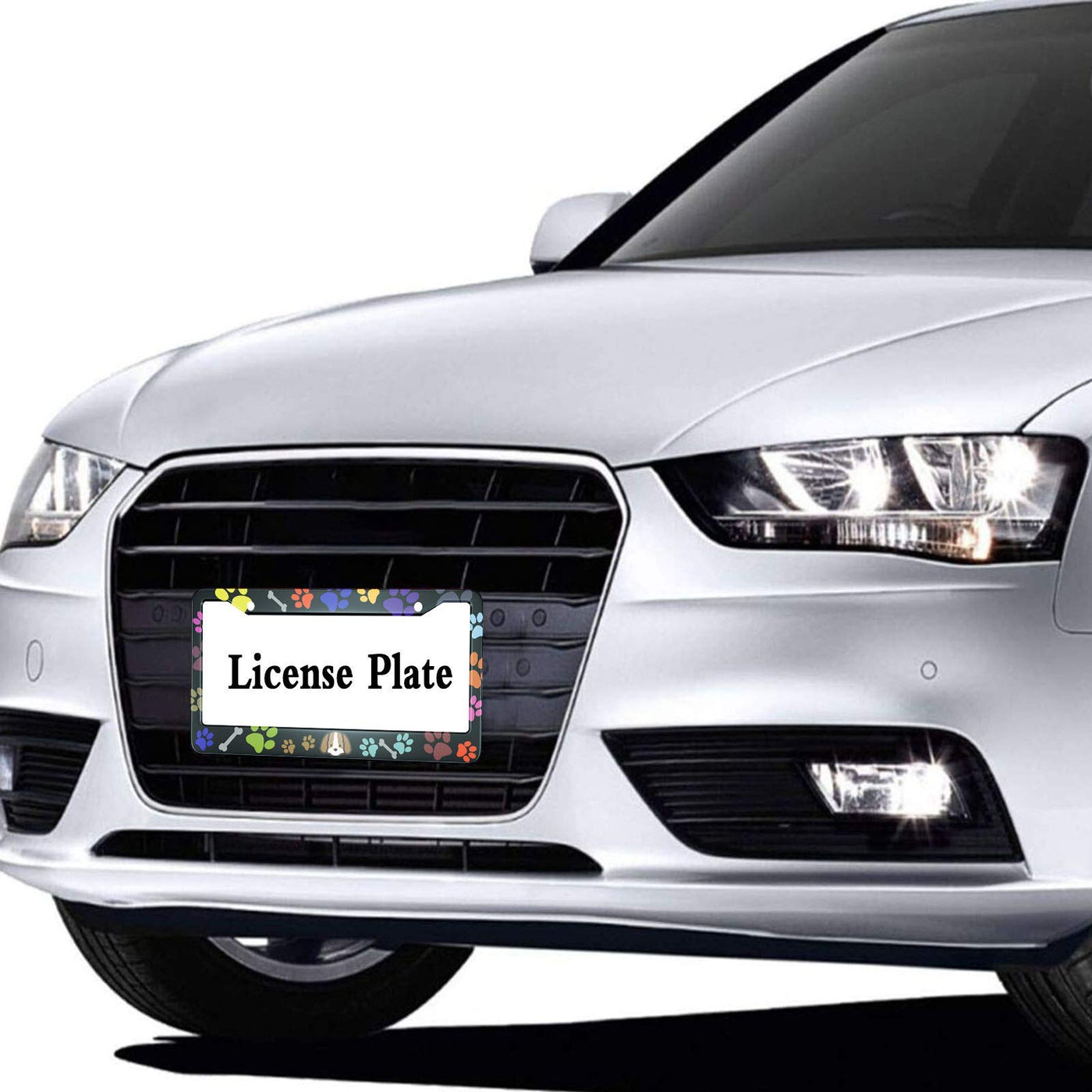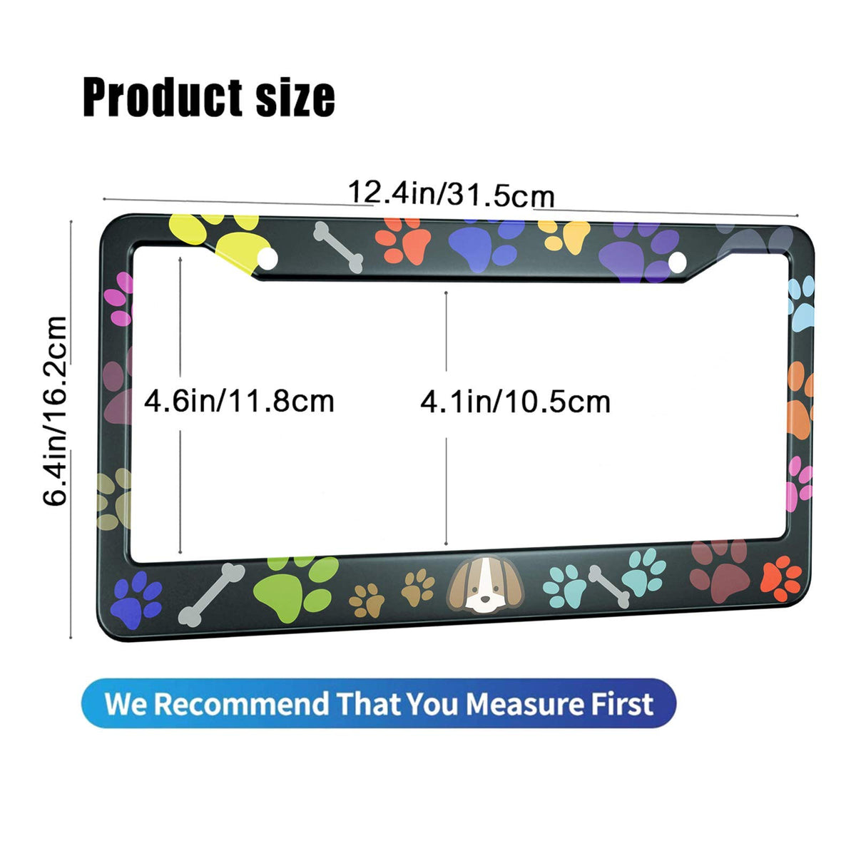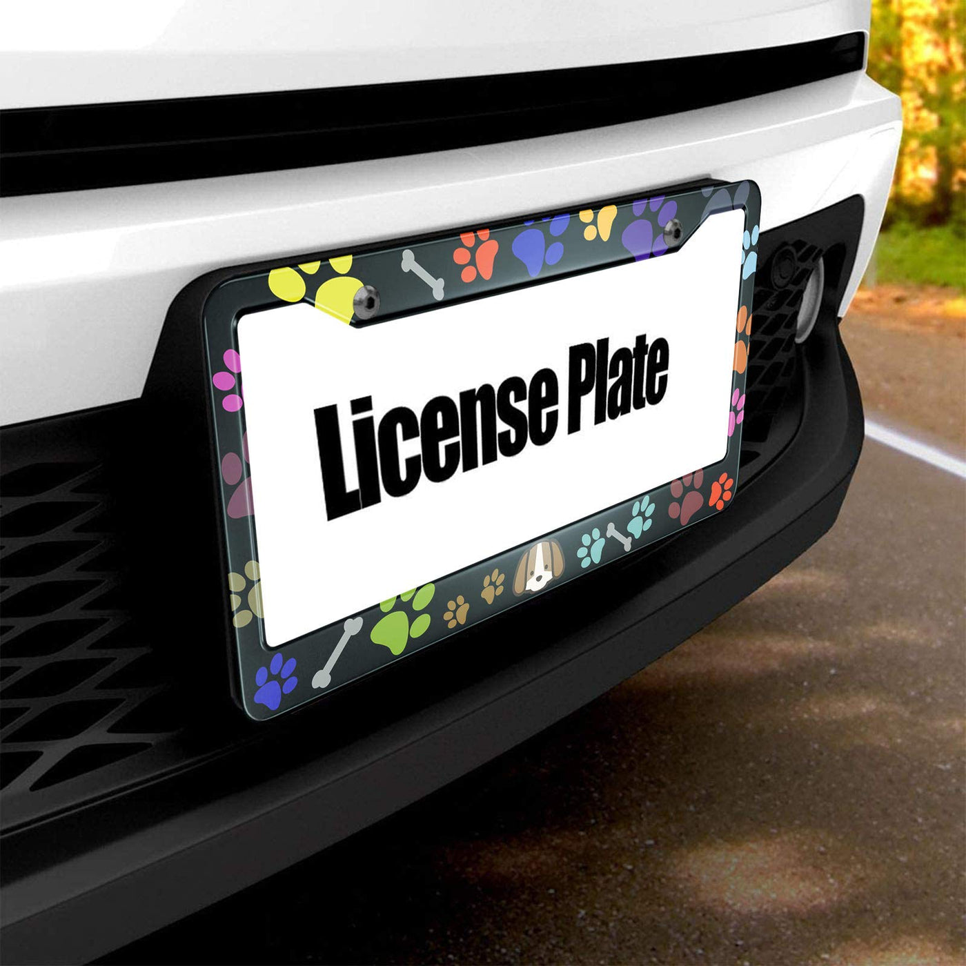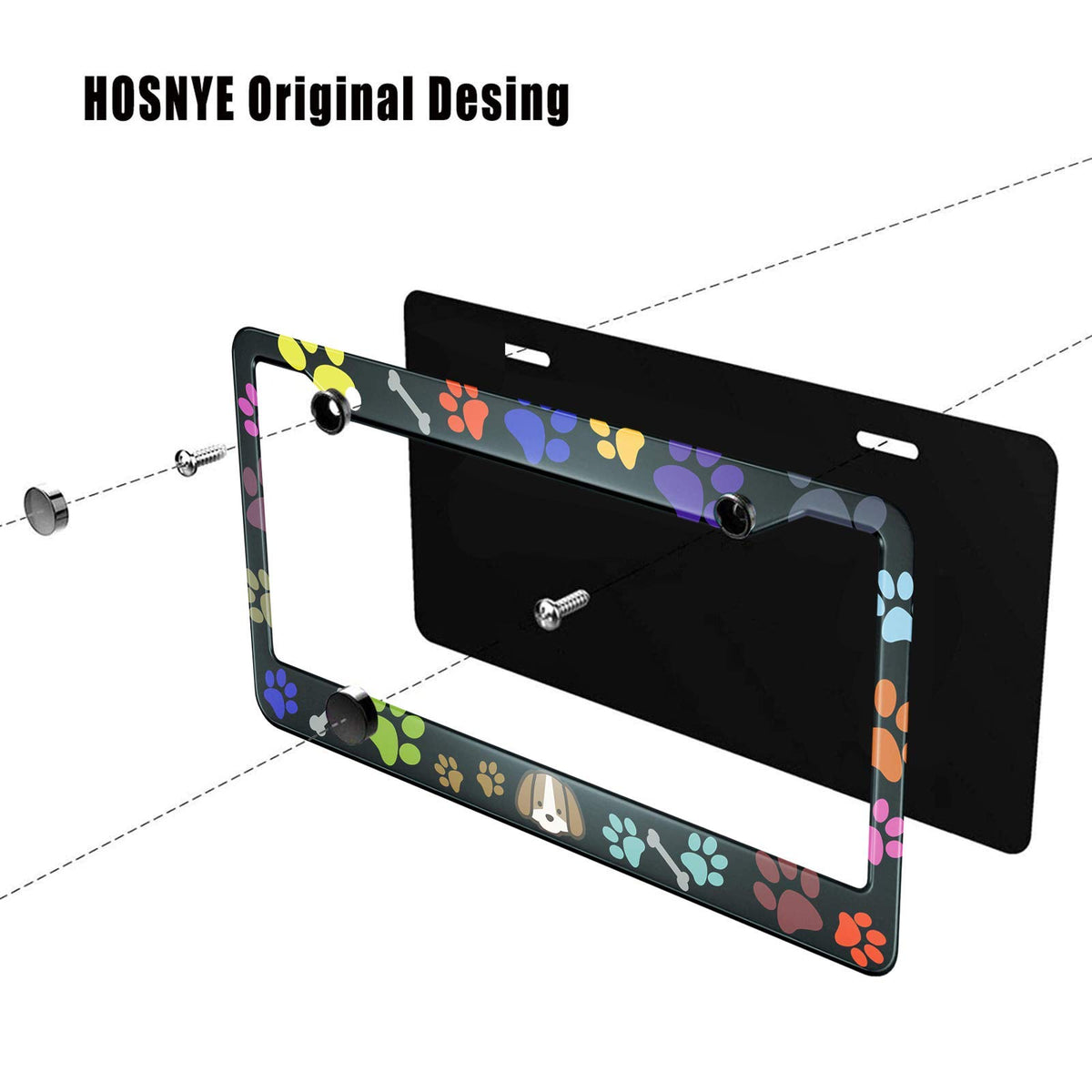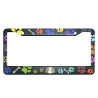 HOSNYE Puppy Bones and Paw Prints License Plate Frame Colorful Puppy Footprints Metal License Plate Cover Front Plates Frames Ca