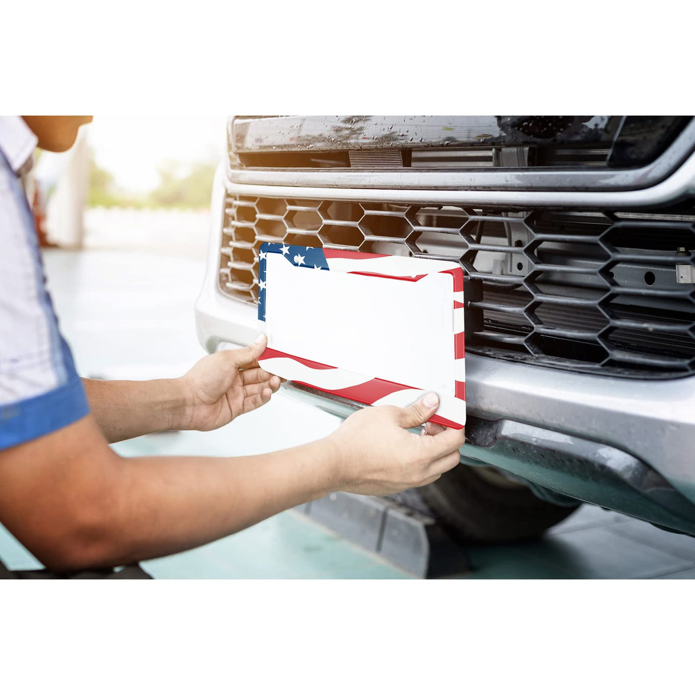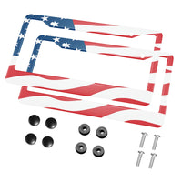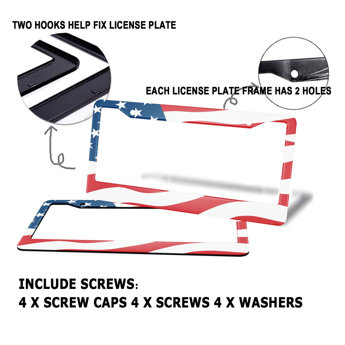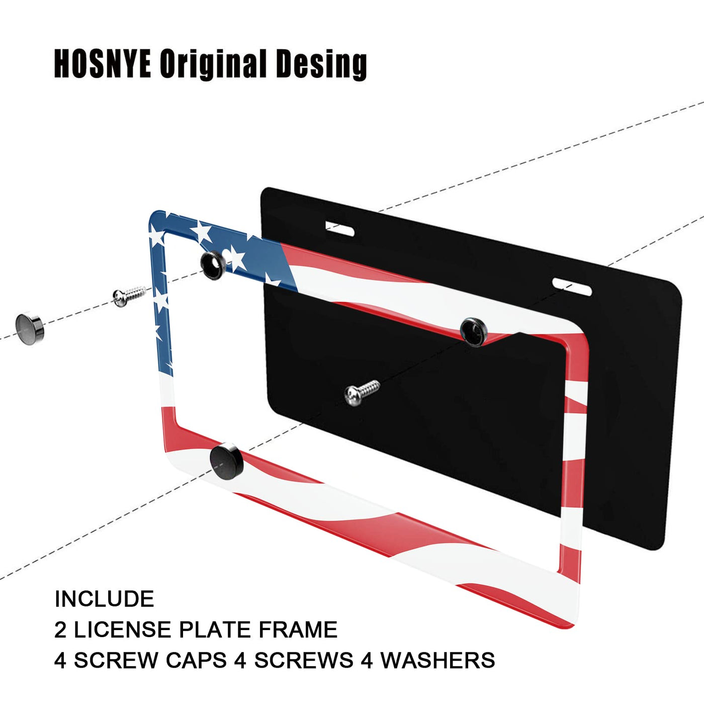 HOSNYE The American Flag License Plate Frame Black 2 Pcs Waving in The Wind Metal Cute Licenses Plates Frames Licenses Plate Cov