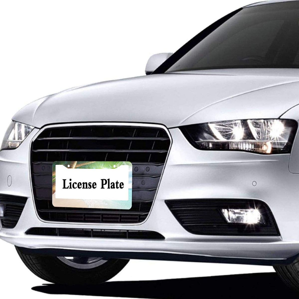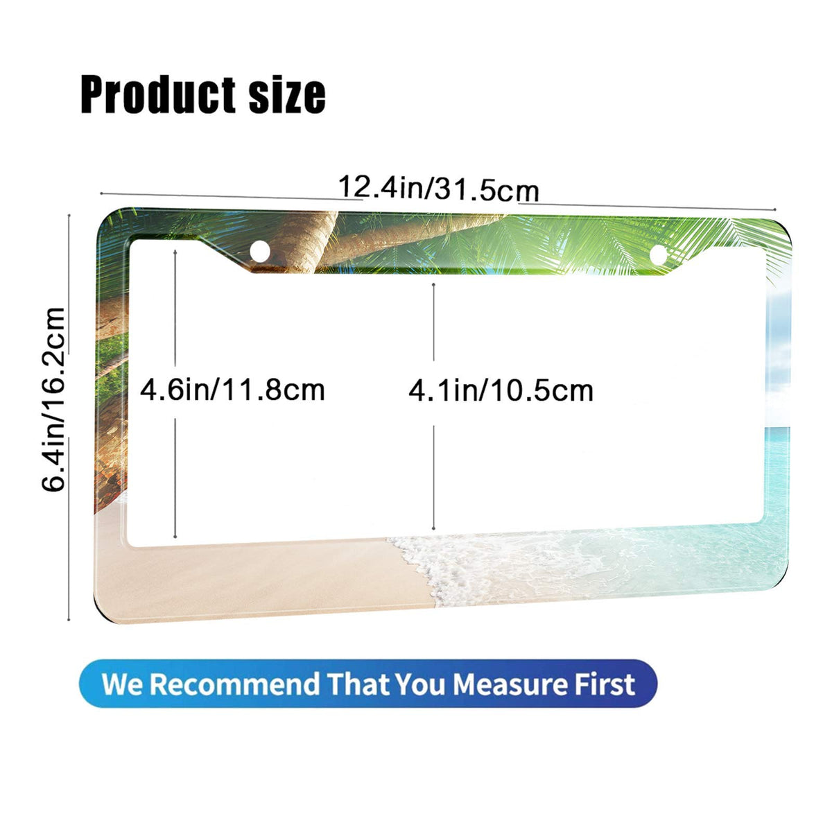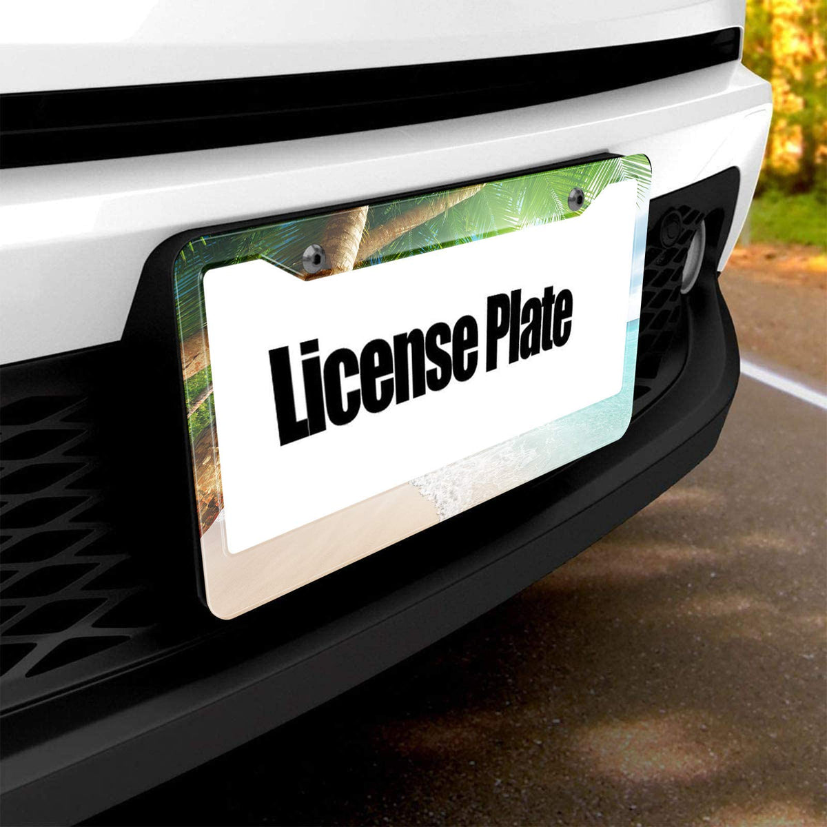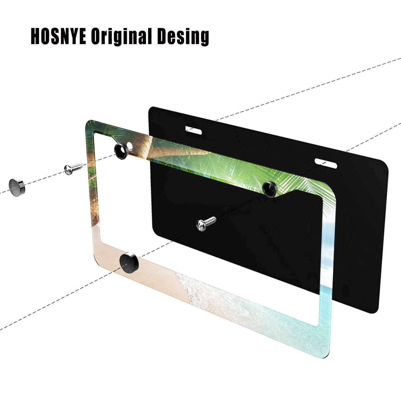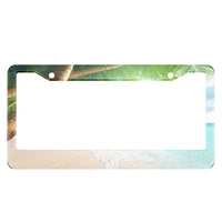 HOSNYE Tropical Beach Leaves License Plate Frame Landscape Summer Palm Tree Metal License Plate Cover Front Plates Frames Car Ta