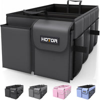 Hotor Foldable Trunk Organizer - Suvs & Sedans, Sturdy Car Organization With 2 Compartments, Black, 23.6 ''14.2 ''10.6 ''