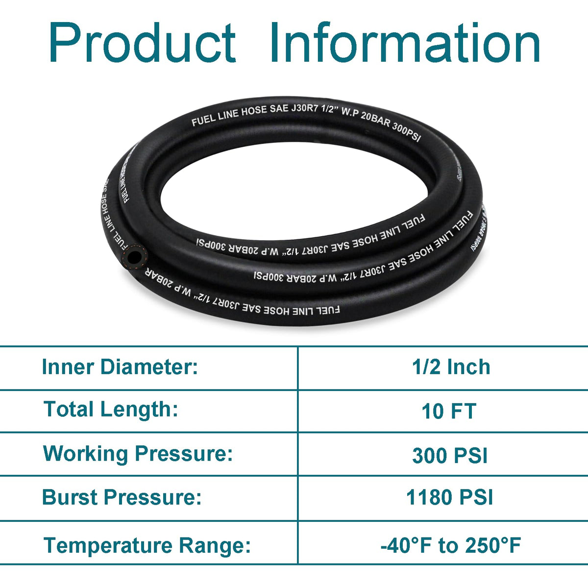 Housun Fuel Line 1/2 Inch Id, Fuel Hose 10Ft, J30R7 Fuel Line Hose Nbr.