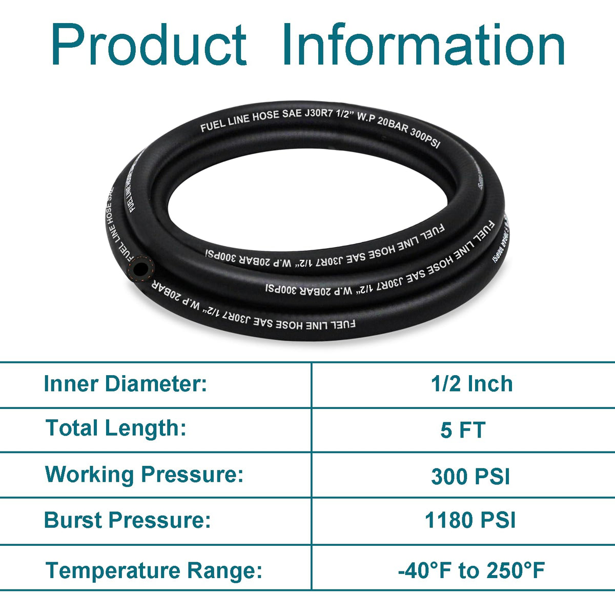 Housun Fuel Line 1/2 Inch Id, Fuel Hose 5Ft, J30R7 Fuel Line Hose Nbr.