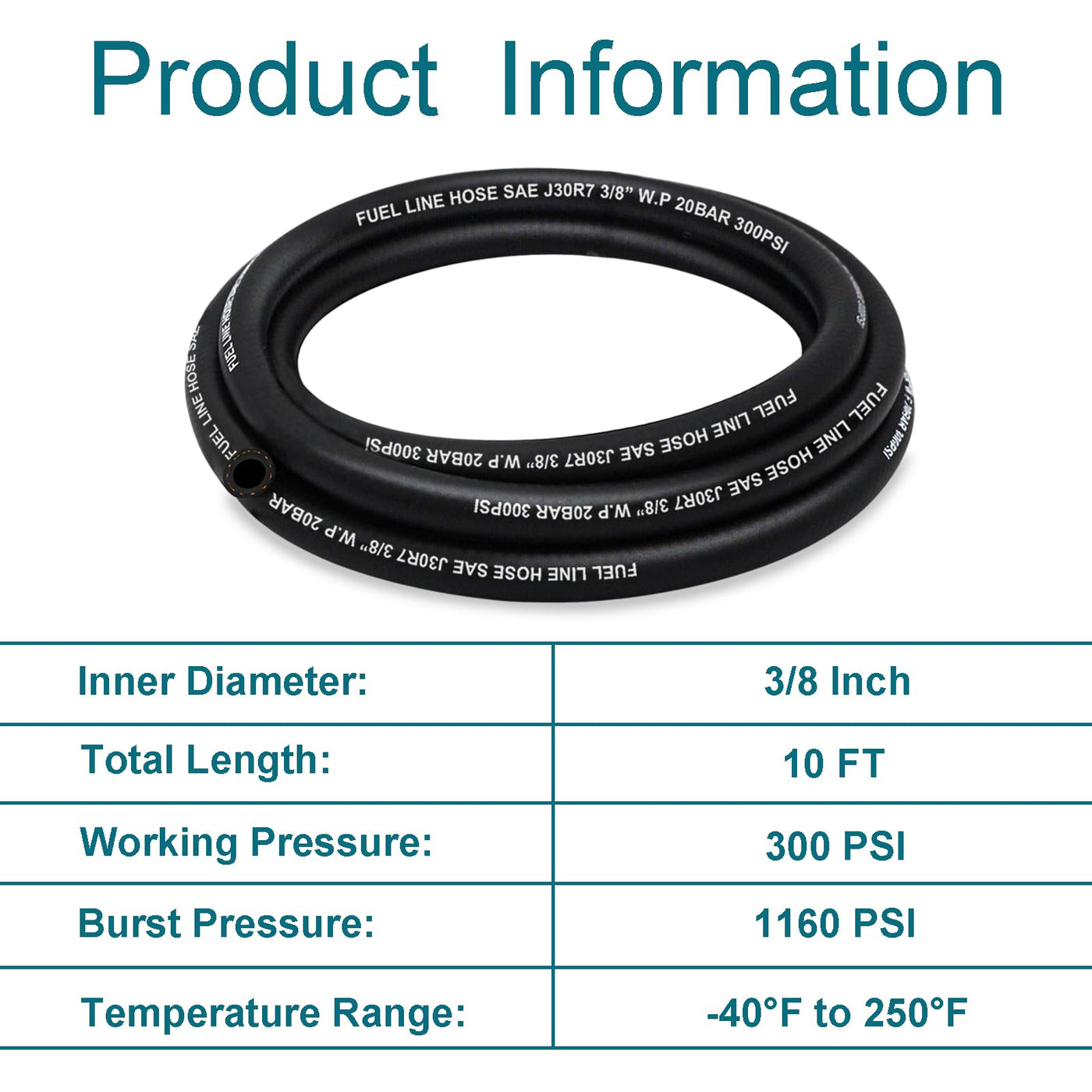 Housun Fuel Line 3/8 Inch Id, Fuel Hose 10Ft, J30R7 Fuel Line Hose Nbr With 10 Clamps.